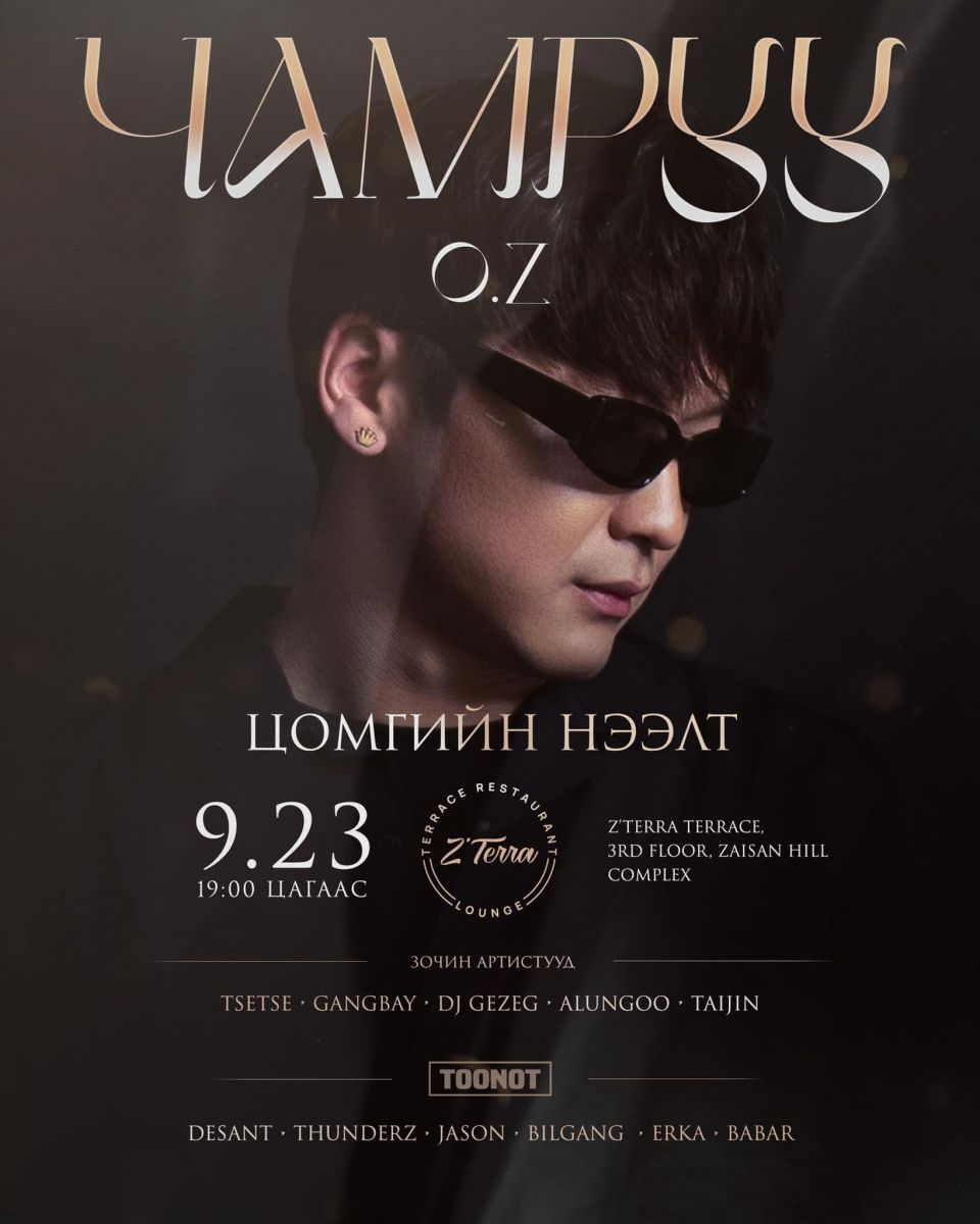 -Баярлалаа. Танай хамт олонд мөн амжилт хүсье. Цомгийн нээлт 09-р сарын 23-ны баасан гарагт "Зайсан хилл" цогцолборт байрлах "Zterra" терраст болно. Хүрэлцэн ирсэн 300 хүнд цомгоо бэлэглэх бодолтой байна. Намайг сонсдог, дэмждэг бүх хүмүүсийг хүрэлцэн ирж, нэгэн үдшийг хамтдаа өнгөрүүлэхийг урьж байна.