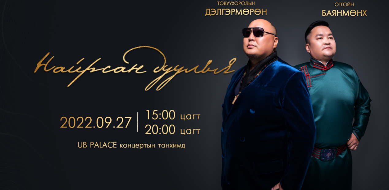 Ухаарал шингээсэн утга яруу үг, сэтгэл зүрхийг хөвсөлзүүлэх тансаг ая эгшгээр нэгэн үдэш хөглөгдөж, хайртай дуучидтайгаа хамтдаа найрсан дуулах энэ тоглолтод  үзэгч та бүхнийг хүндэтгэн урьж байна. Тоглолтын талаарх дэлгэрэнгүй мэдээллийг 75754141, 95594141, 94994141 дугаараас лавлахаас гадна ticket.mn 1900-1800, 1900-1950 UB паласын билетээр кассаар тус тус захиалан үнэгүй хүргүүлэн аваарай.