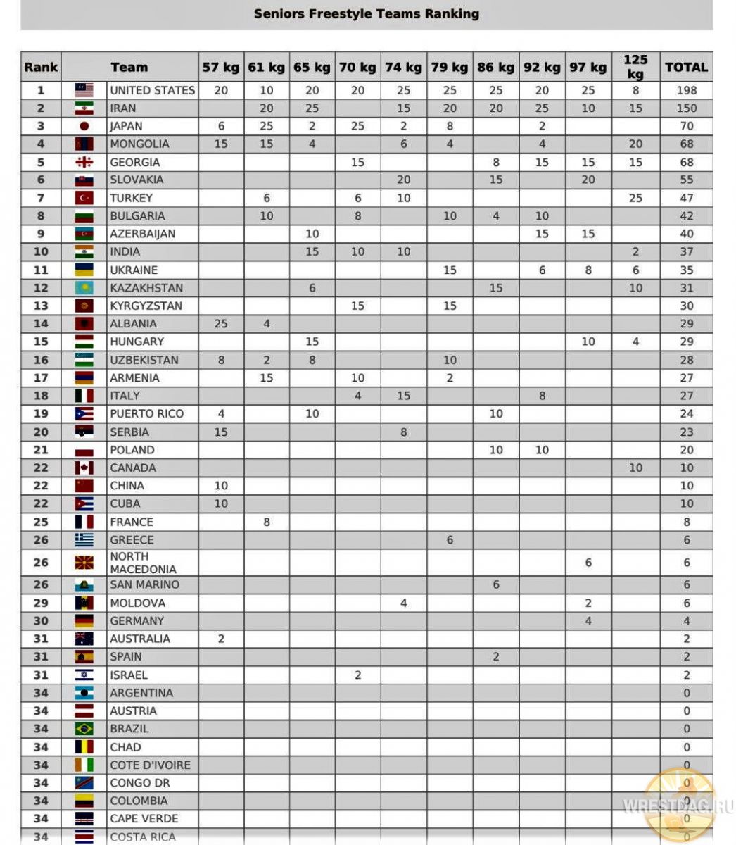 Багийн дүнгээр эрчүүд 68 оноотойгоор 4-р байрт (АНУ 198, Иран 150, Япон 70), эмэгтэйчүүд 72 оноотойгоор мөн 4-р байрт (Япон 190, АНУ 157, БНХАУ 84) орлоо. Ийнхүү манай эрэгтэй, эмэгтэй баг ирэх арван хоёрдугаар сарын 10-11-нд Америкийн Айовад явагдах Дэлхийн Цомын тэмцээнд оролцох эрхтэй боллоо. Дэлхийн цомд энэ жил шилдэг 5 баг оролцоно. Дээр нь эхний тавд ороогүй багуудаас Дэлхийн шигшээ баг бүрдүүлж, өрсөлдөх юм.
