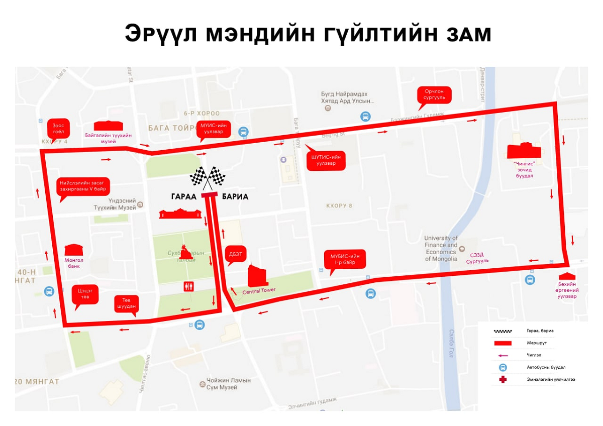 -Автомашингүй өдөр арга хэмжээний хүрээнд өглөөний 07:00-18:00 цаг хүртэл тодорхой бүсийн замын хөдөлгөөнийг түр хаана. Замын хөдөлгөөний аюулгүй байдлыг хангах чиглэлээр 375 алба хаагч, 300 гаруй цэгт хяналт тавьж ажиллана. МУИС-иас зохион байгуулж буй 15 км-ийн гүйлтийн хүрээнд цагдаагийн байгууллагаас 150 орчим алба хаагч хэвийн, аюулгүй зорчих нөхцөл боломжийг бүрдүүлж, явган, мотоциклтой эргүүлүүд гарна.