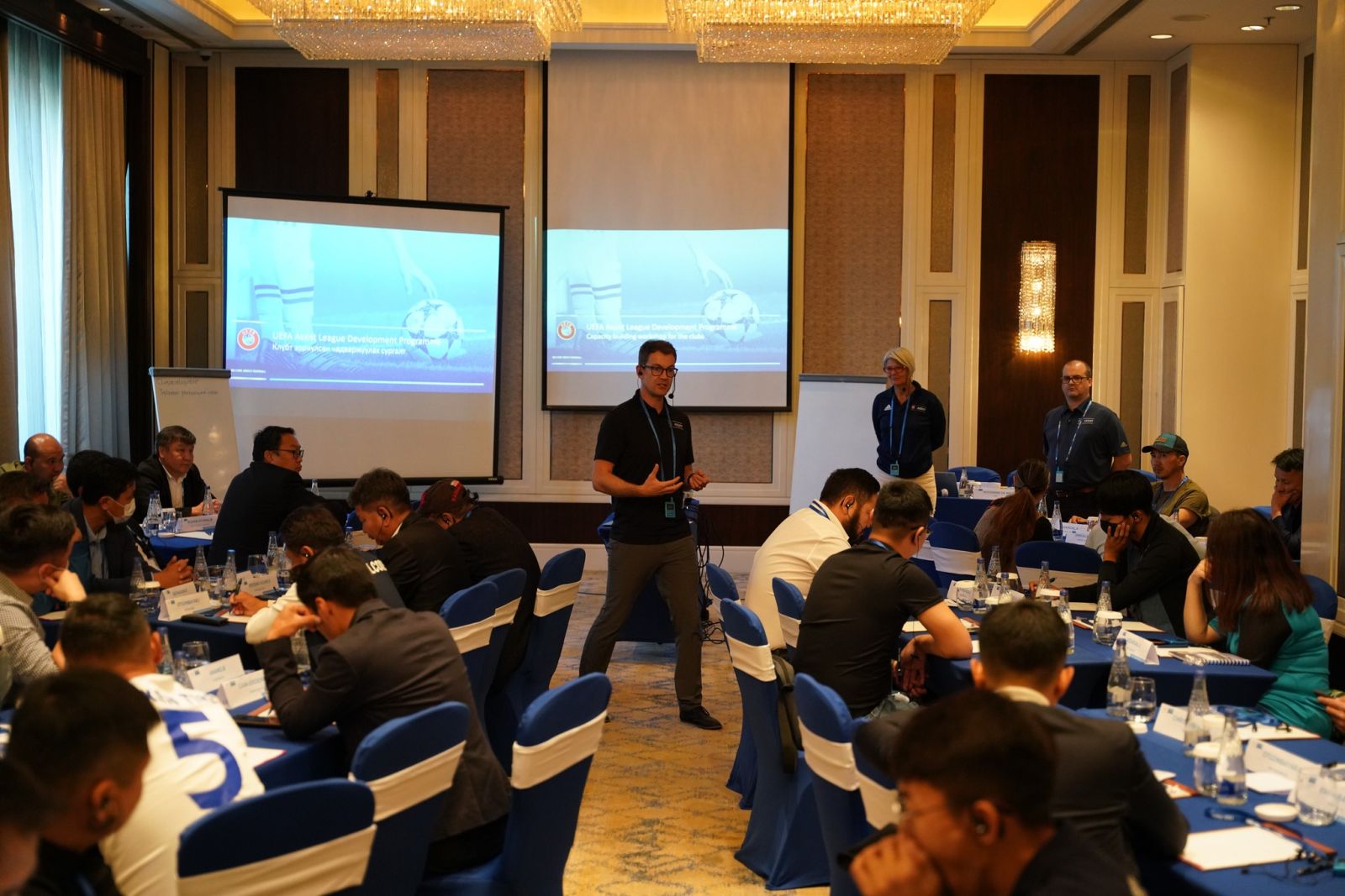 Уг сургалтыг өмнө нь Монголд улсад хүрэлцэн ирж сургалт орж байсан Европын Хөлбөмбөгийн Холбооны мэргэжилтнүүд болох Крис Милнес, Хестерин Де Рюс, Стюарт Ларман нар удирдан явуулж байгаа юм.