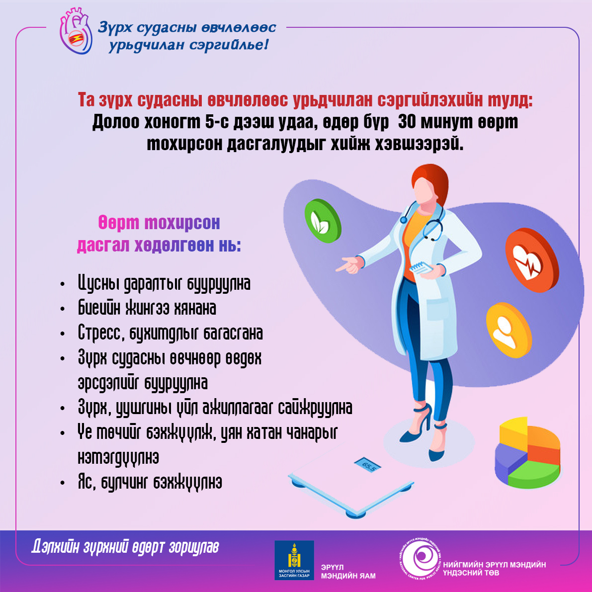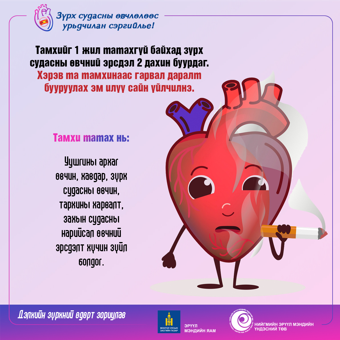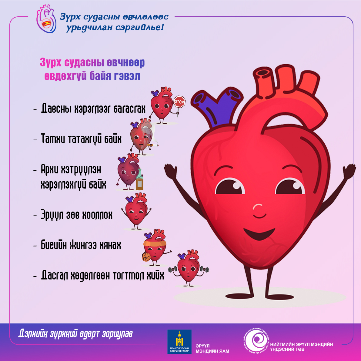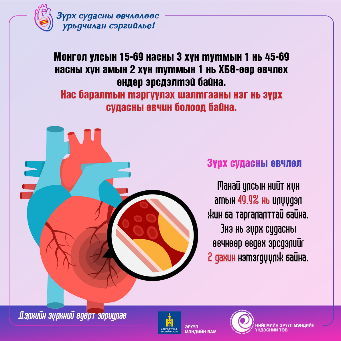 Энэ өдөртэй холбогдуулан зүрх, судасны өвчлөлтэй холбоотой зурган мэдээллийг хүргэе.