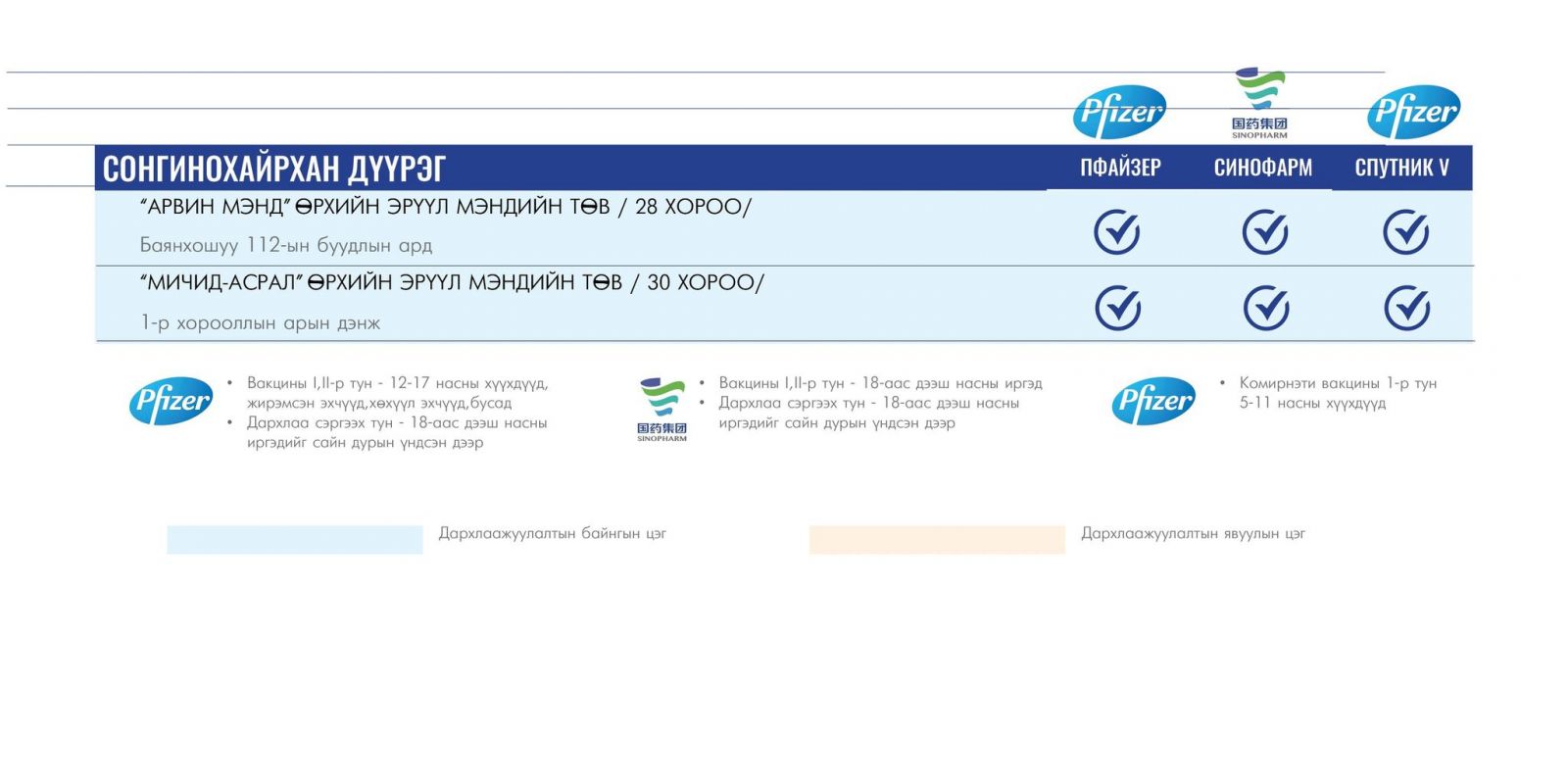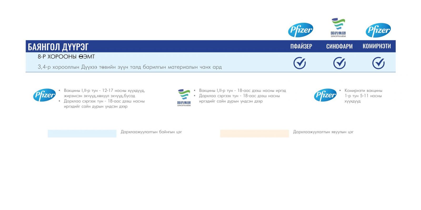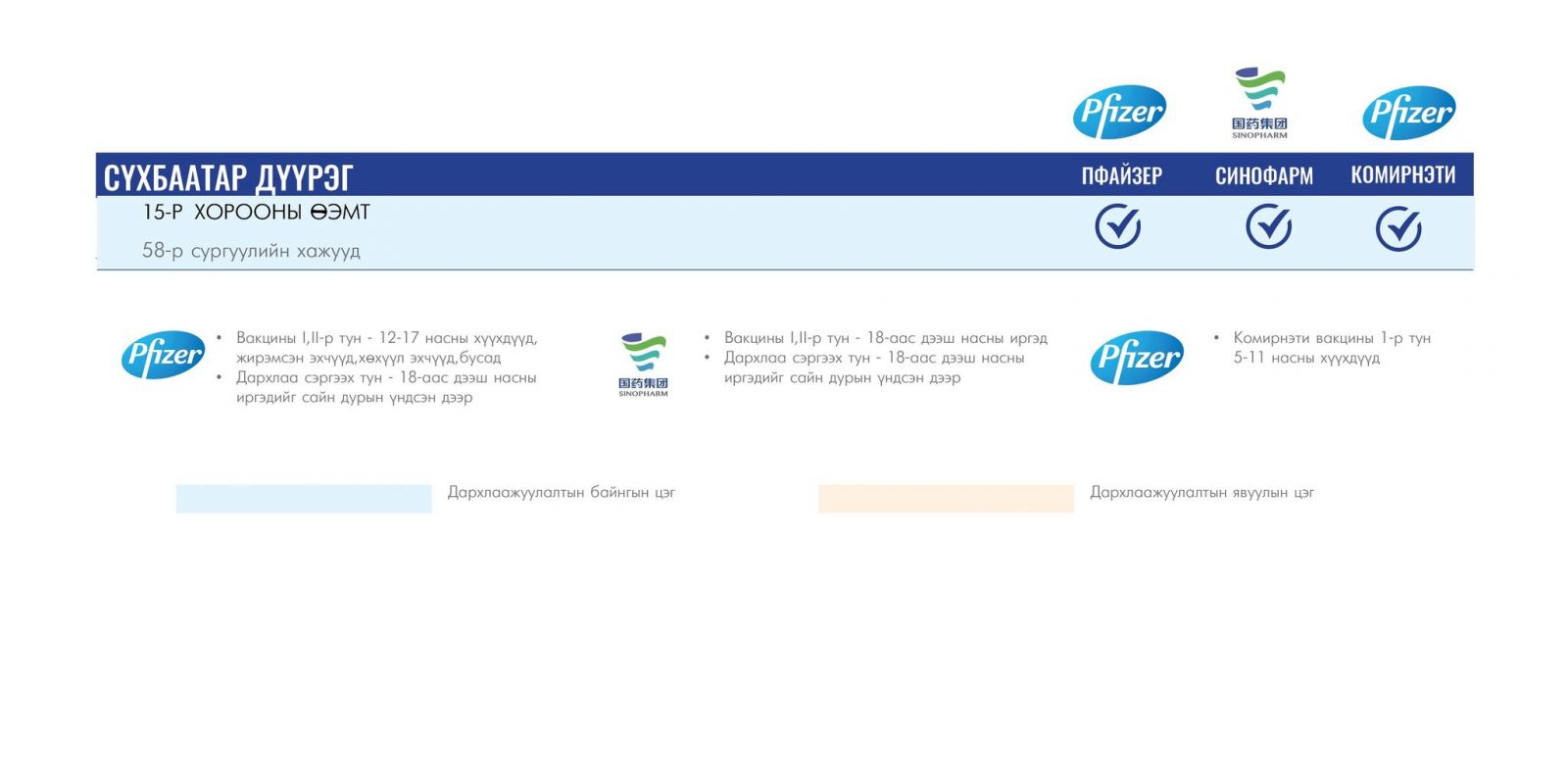 2022.10.01-нд Улаанбаатар хотод суурин 11 цэгээр 11 багийн 41 эмч, ажилтан ажиллана. Та өөрт ойр вакцины аль ч цэгт очиж дархлаажуулалтад хамрагдах боломжтой. Дархлаажуулалтын цэгүүд 10:00-15:00 цаг хүртэл ажиллана.