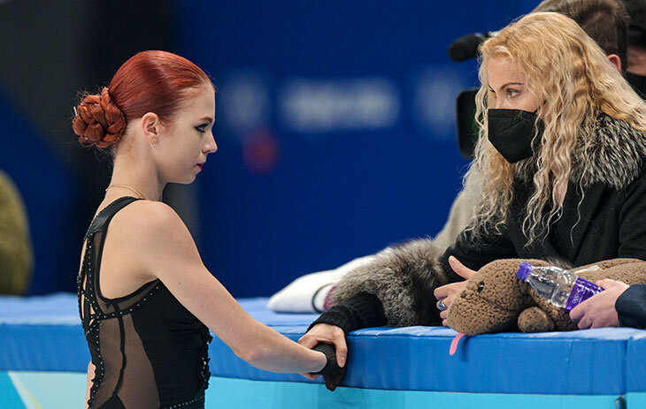 Трусова 2016-2020 онд Этери Тутберидзе дээр хичээллэж байгаад Плющенкогийн багт хичээллэсэн. Плющенкотой хамт ДАШТ-ий хүрэл медалиас дээш гарч чадаагүй тул буцаад Этери дээр ирсэн. Олимпын аварга болно гэж итгэж найдаж байсан ч чадаагүй учир ийнхүү шинэ багштай боллоо.