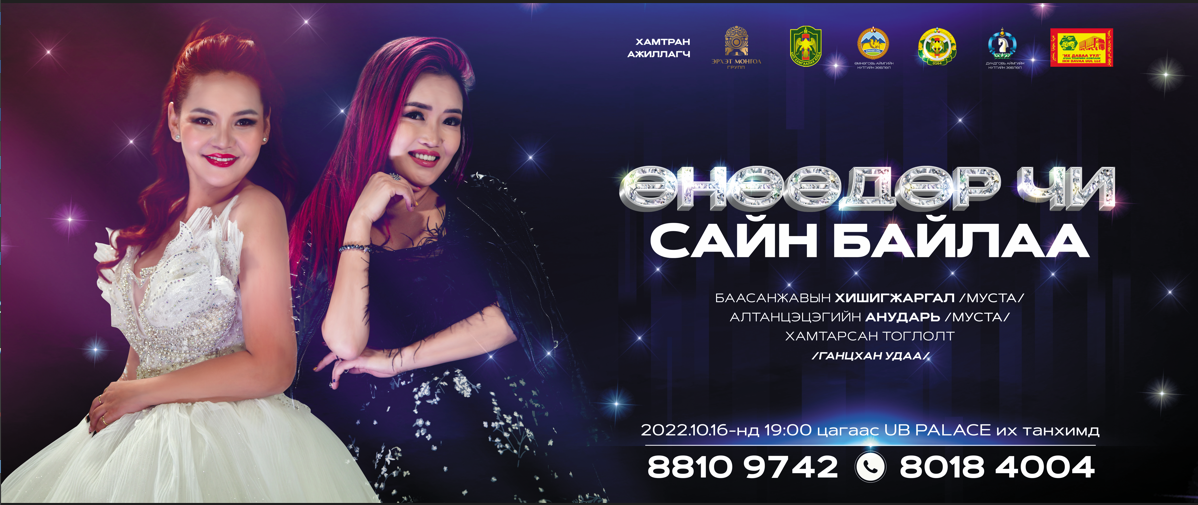 МУСТА Б.Хишигжаргал, МУСТА А.Анударь нар хамтарсан "Өнөөдөр чи сайн байлаа" тоглолтоо энэ сарын 16-ны өдөр "Ub Palace"-т ганцхан удаа хийхээр товложээ.