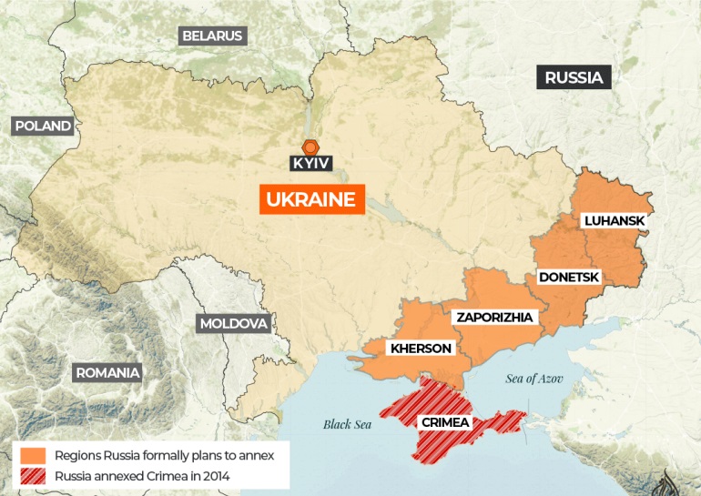 ОХУ-ын Холбооны зөвлөл /парламентын дээд танхим/ нэгдсэн чуулганаар Донецк, Луганск, Херсон, Запорожье мужуудыг Оросын бүрэлдэхүүнд нэгтгэх тухай олон улсын гэрээг соёрхон батлах тухай хуулийг дэмжив.