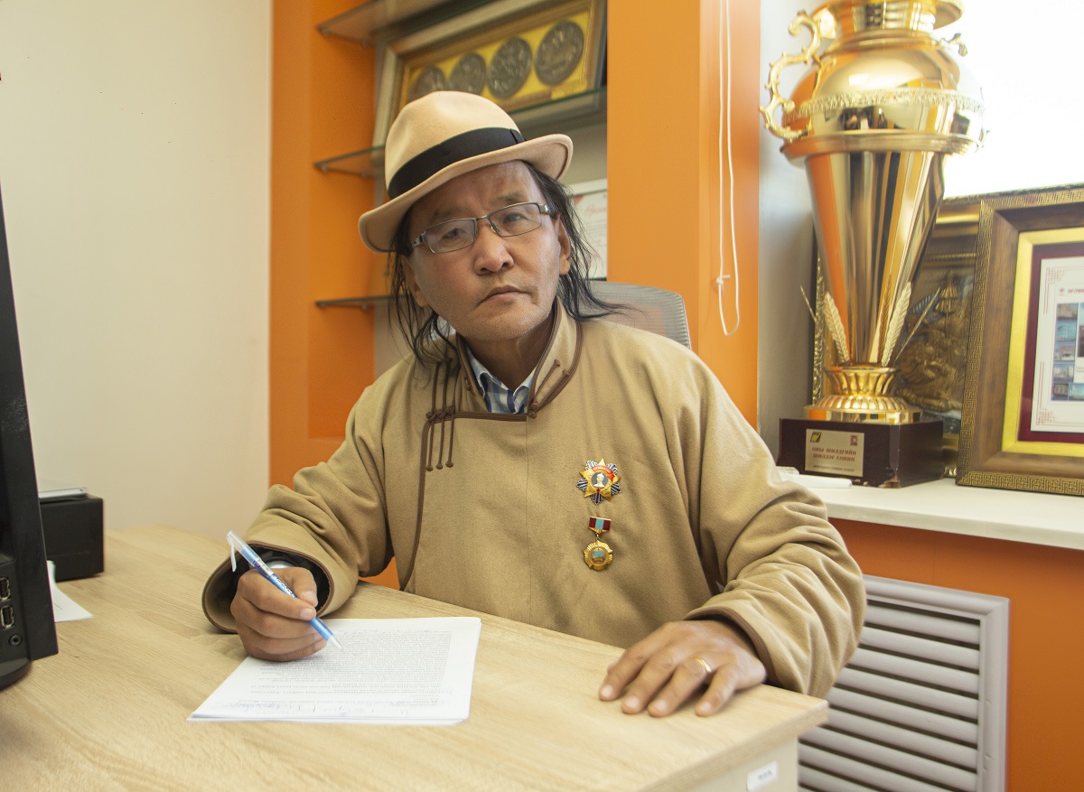 -Төрийн ордонд өлгөчихсөн байна лээ, надад зураг нь байна /гар утаснаасаа зураг харуулав/. За тэгээд, одон тэмдэг нь ч гэсэн хуурамч болсон доо. Уг нь тэр нь байдгаараа байгаад ёс журмаар нь өгдөг баймаар. Гэтэл хувийн дархчуул хийдэг юм уу, нам бүлэглэлүүд хийдэг юм уу, одон тэмдэг нь худал, олгож байгаа нь ч худал. Сум орон нутаг, хөдөө гадаа байгаа хүмүүсийг хуурдаг юм уу, хаашаа юм. Манай сумын нэг номерын хулгайчид “Алтан гадас” одон өгчихөөд байж байна. Сайн хулгай хийлээ гэж шагнасан юм уу, хаашаа юм. Өнөөх нь одонгоо ирж авахгүй байсан, дараа нь наадмаар зүүчихсэн явж байх жишээтэй. Нам, улс төрөөр одон тэмдэг авдаг л биз, үүний чинь цаана төр гэж нэг юм бий биз дээ. Төрийн шагнал гэж бид ярьдаг байх аа. Төрийг муужруулах, төрийг хямдчлах, төрийн нэр төрийг унагах, төрийг жижигхэн болгох, төрийн босгыг намсгах асуудлаар хүмүүс нэлээд ажилласан даа. Дөрвөн Ерөнхийлөгч нь нуух юм байхгүй, Монгол Улсын гавьяат, Тэргүүний гэх одон тэмдгүүд тарааж, гавьяагүй гавьяатууд өдий төдий. Тэр хүмүүс тэтгэвэрт гарч, дээр нь гавьяатын нэмэгдэл авна. Төрийг ядарч байхад гавьяагүй хүмүүс ахиж ядраах алсдаа хортой. Өнөөдөр өнгөц харахад сайхан л харагддаг байх. Ийм зүйлүүд бодогдож байна. Өнөөдөр нийгэм гундуу, гандуу, улс ардын аж ахуйн бүх салбар нурж унасан, байхгүй болсон. Гэтэл аж үйлдвэрийн гавьяатууд үй түмээрээ төрж байна. Аж үйлдвэр нь байхгүй байхад Аж үйлдвэрийн гавьяатууд төрөөд байдаг нь хачин шүү. Энэ салбарт ажиллаж байсан хүмүүс хаана байна гэхээр ундааны лааз түүгээд амьдарч явна. Монголын ажилчин анги гээд бүрэн бүрэлдэхүүнээрээ жагсч байсан үе өнгөрч, бүгд гудамжинд гарчихсан хог, лааз түүгээд явж байна шүү дээ. Төр тэднийг хардаггүй юм уу, ганц би олж хараад байгаа юм уу. Ганц хоёр үйлдвэр байгуулж, улс орноо аврах болохоос үй түмээрээ лааз түүж, доод анги бий болоод хөгжих үү.
