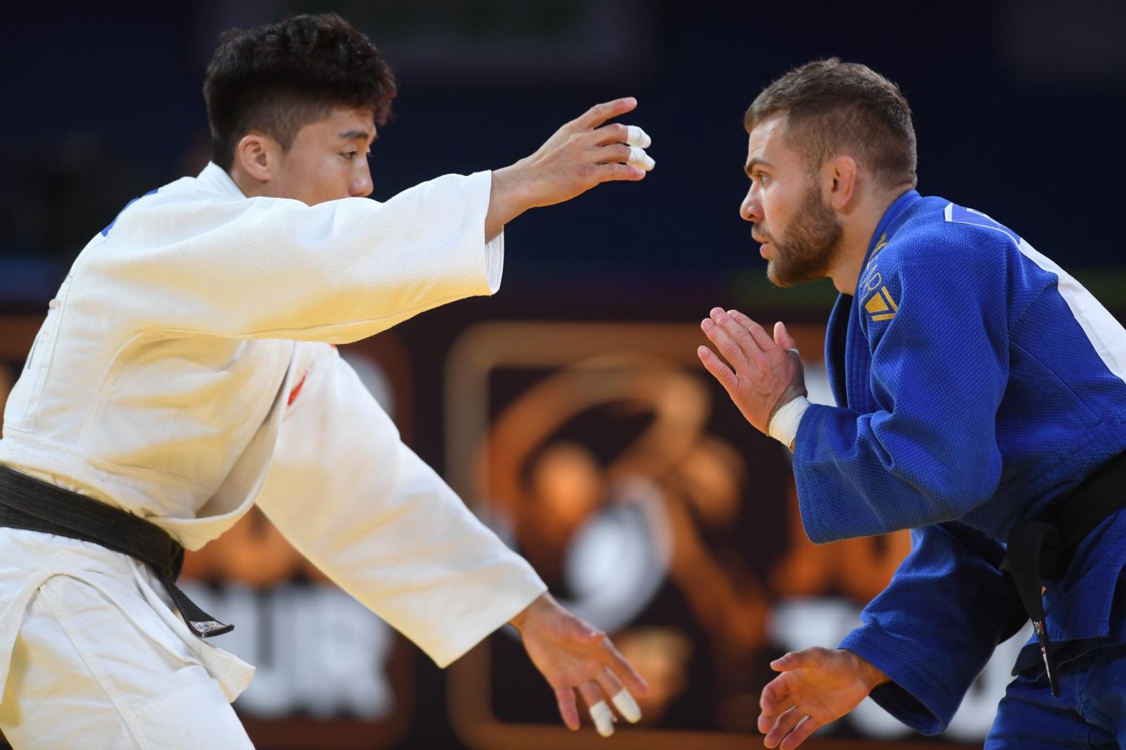 Давид сэжиж эргэх гэж оролдоод дээрээ манай бөхийг алдсанаар вазари алдлаа. Барилдаан дуусах гэж байхад Э.Ариунболд мушгиж дараад дахин вазари авснаар ИППОН ялалт байгууллаа.