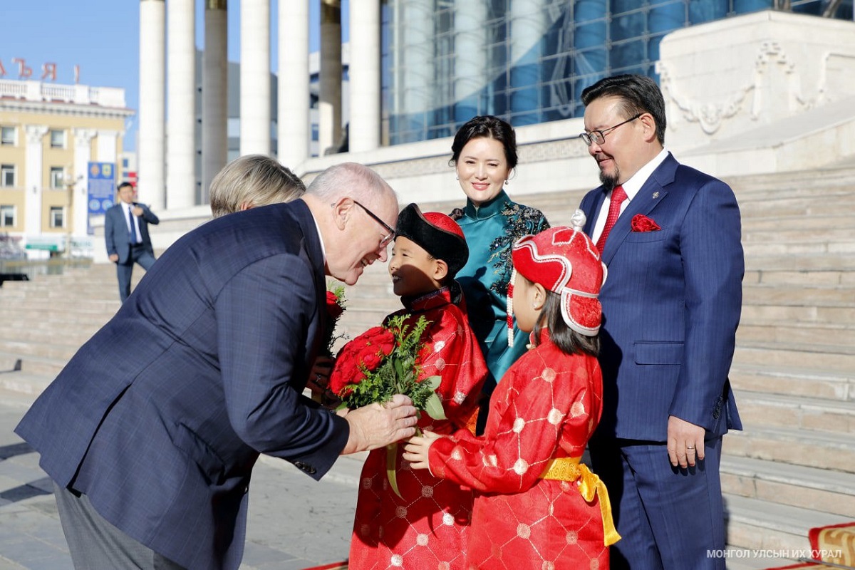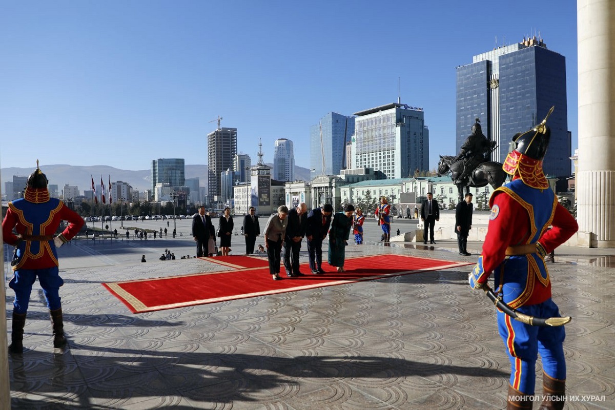 Улсын Их Хурлын дарга Г.Занданшатар, гэргий Г.Отгонгэрэлийн хамт өнөөдөр (2022.10.10) Монгол Улсад албан ёсны айлчлал хийж буй Канад Улсын Парламентын Сенатын танхимын дарга ноён Жорж Ж.Фюри, гэргий Карен Фюри нарыг Жанжин Д.Сүхбаатарын талбайд угтан мэндчиллээ.