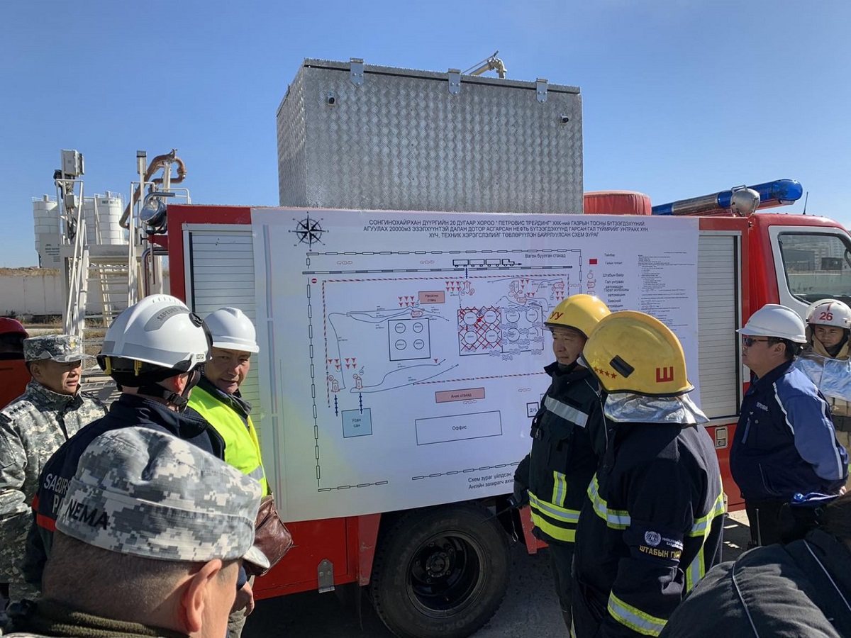 Энэ хүрээнд Бүгд Найрамдах Франц Улсаас нийлүүлэгдсэн үйлдвэрийн гал түймэр унтраах автомашинуудыг оролцуулан Сонгинохайрхан дүүргийн 20 дугаар хорооны нутаг дэвсгэрт байрлах “Петровис трейдинг” ХХК-ийн газрын тосны бүтээгдэхүүний агуулахад гарсан гал түймрийг унтраах тактикийн дадлага, сургалтыг зохион байгууллаа.