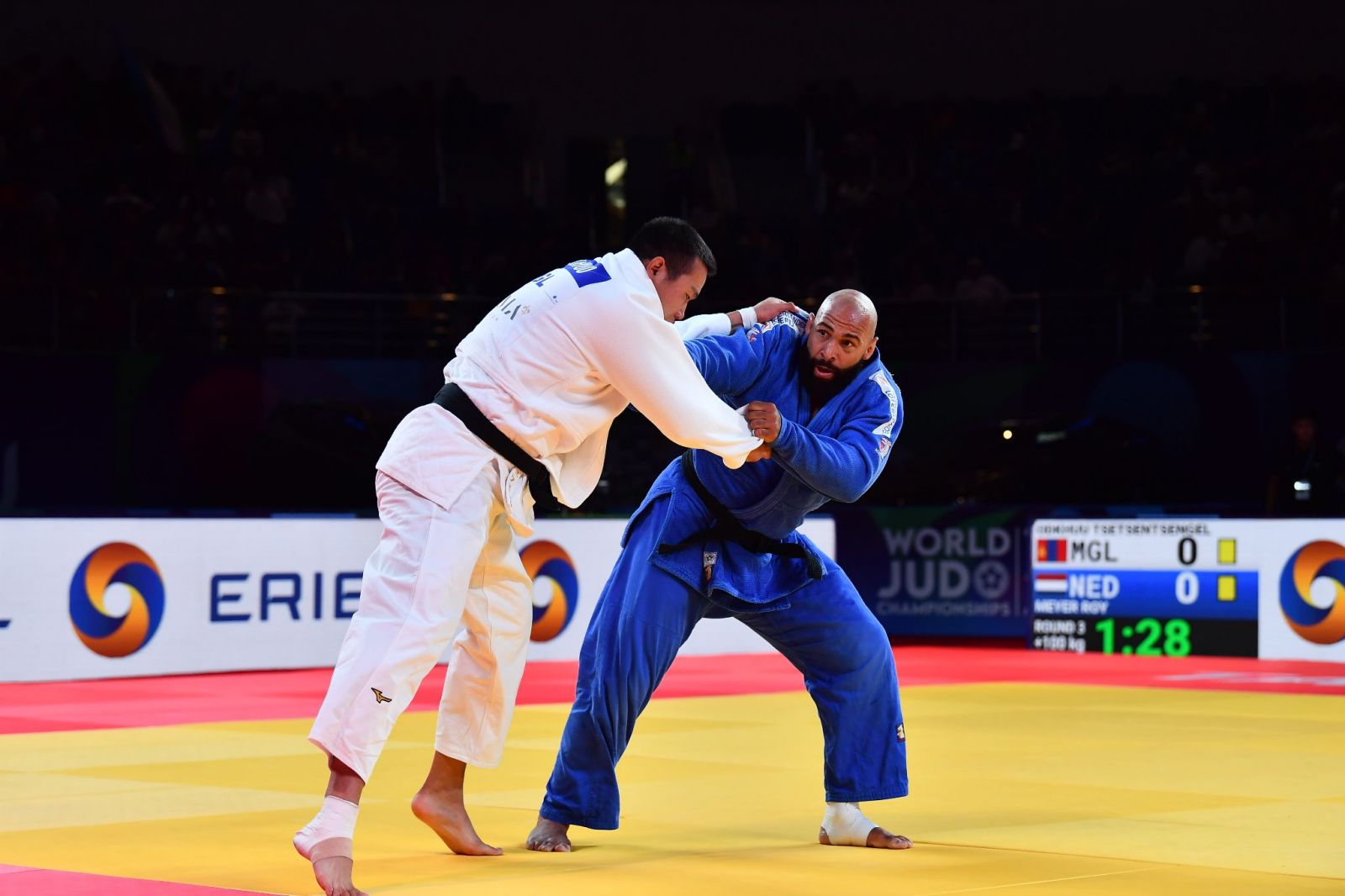 Дараа нь Голландын Рой Мейертэй барилдав. Дэлхийн хос хүрэл медальт, Европын хос хүрэл медальт бөх. 31 настай. Хоёр бөх хоорондоо таарч, барилдаж байгаагүй ажээ. Барилдаан эн тэнцүүхэн өрсөлдөж, хашир туршлагатай Рой идэвх үзүүлсээр манай бөхийг торгуулиар цэвэр яллаа.