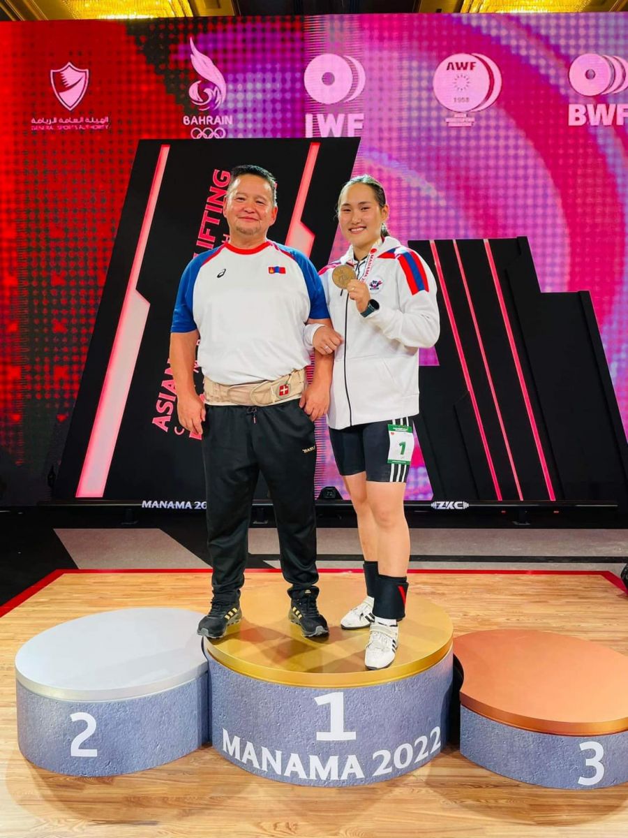 "Манама-2022" Азийн аваргад гавьяат дасгалжуулагч Цэнхэржавын Хосбаярын удирдлага доор манай дөрвөн эмэгтэй туйванч хүчээ сорьж буй бөгөөд дэвжээнд гарсан гурав маань гурвуулаа (59 кг-д Э.Энхтамир огцмоор мөнгө, 71 кг-д Г.Ануужин огцомд хүрэл, нийлбэрээр хүрэл, 76 кг-д О.Дархижав огцомд мөнгө) медаль хүртээд байна.