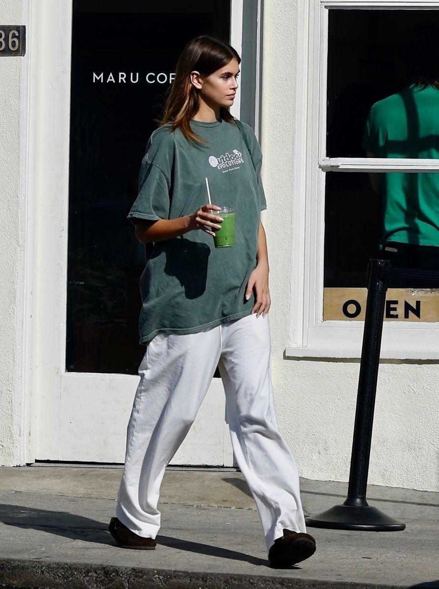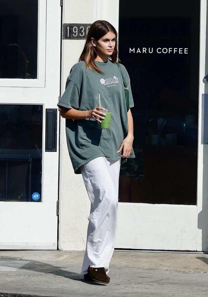 Ерөөд оны үеийн супер модель Синди Кроуфордын охин, Америкийн жүжигчин, модель Кайя Гербер том хэмжээний буюу oversize футболка өмсөх дуртай. Ийм богино цамцыг жийнс, бэлтгэлийн өмд, ретуз дээр ч өмсөж болно.