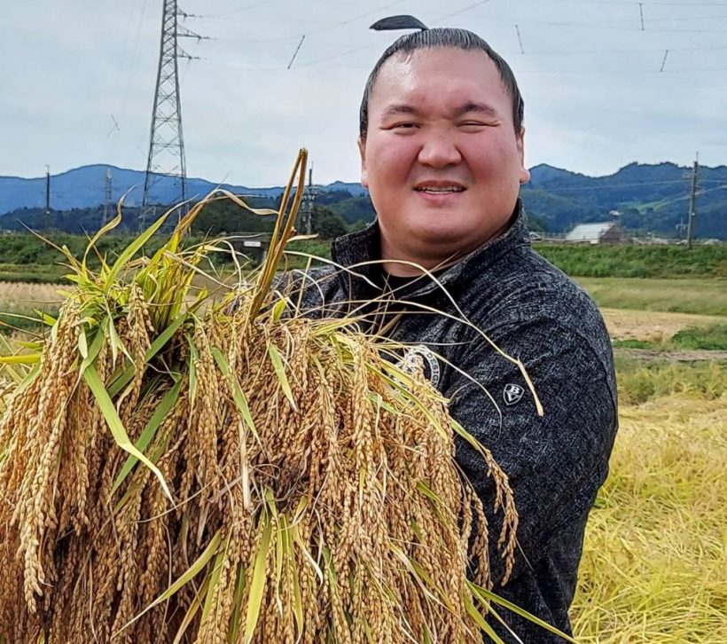 Их аварга Хакүхо Нийгата мужийн Минамиүонүма хотод байдаг талбайдаа очиж, брэндийн будаагаа хураан авчээ.