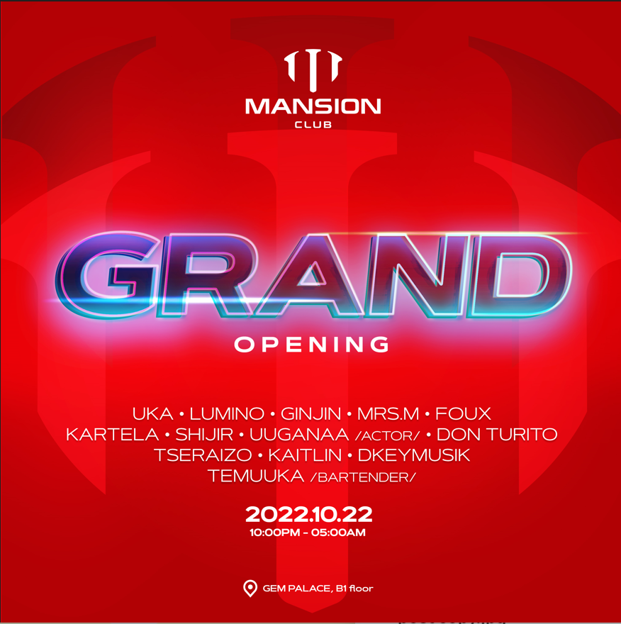 Их хотын хөгжим сонирхогч залууст зориулсан цоо шинэ "Mansion Club" энэ сарын 22-ний өдөр буюу ирэх бямба гарагт нээлтээ хийх гэж байна.