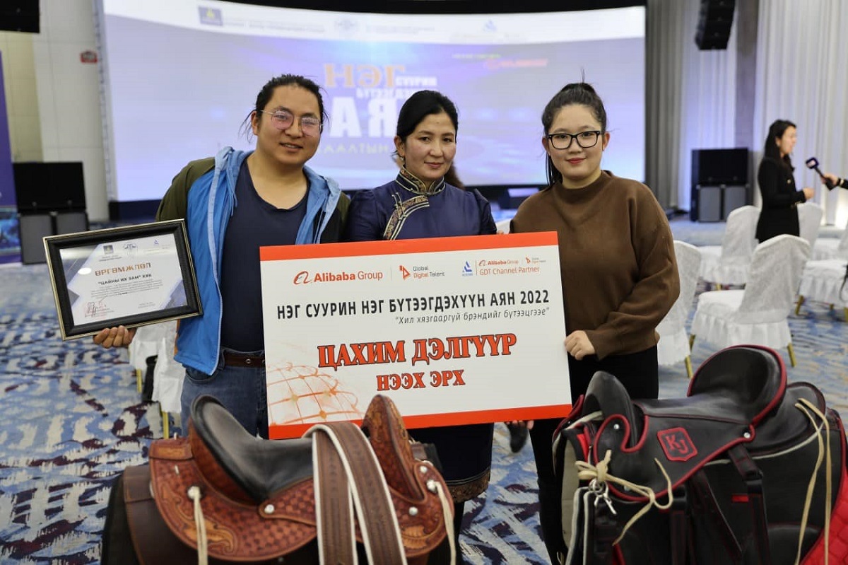 • 1-р байрт шалгарсан “Цайны их зам” ХХК. Тус компани нь Дархан-Уул аймагт эмээл үйлдвэрлэлийн чиглэлээр үйл ажиллагаа явуулдаг бөгөөд 2500 ам.долларын эрх бүхий Alibaba.com платформ дээр дэлгүүр нээх эрхийн эзэн боллоо