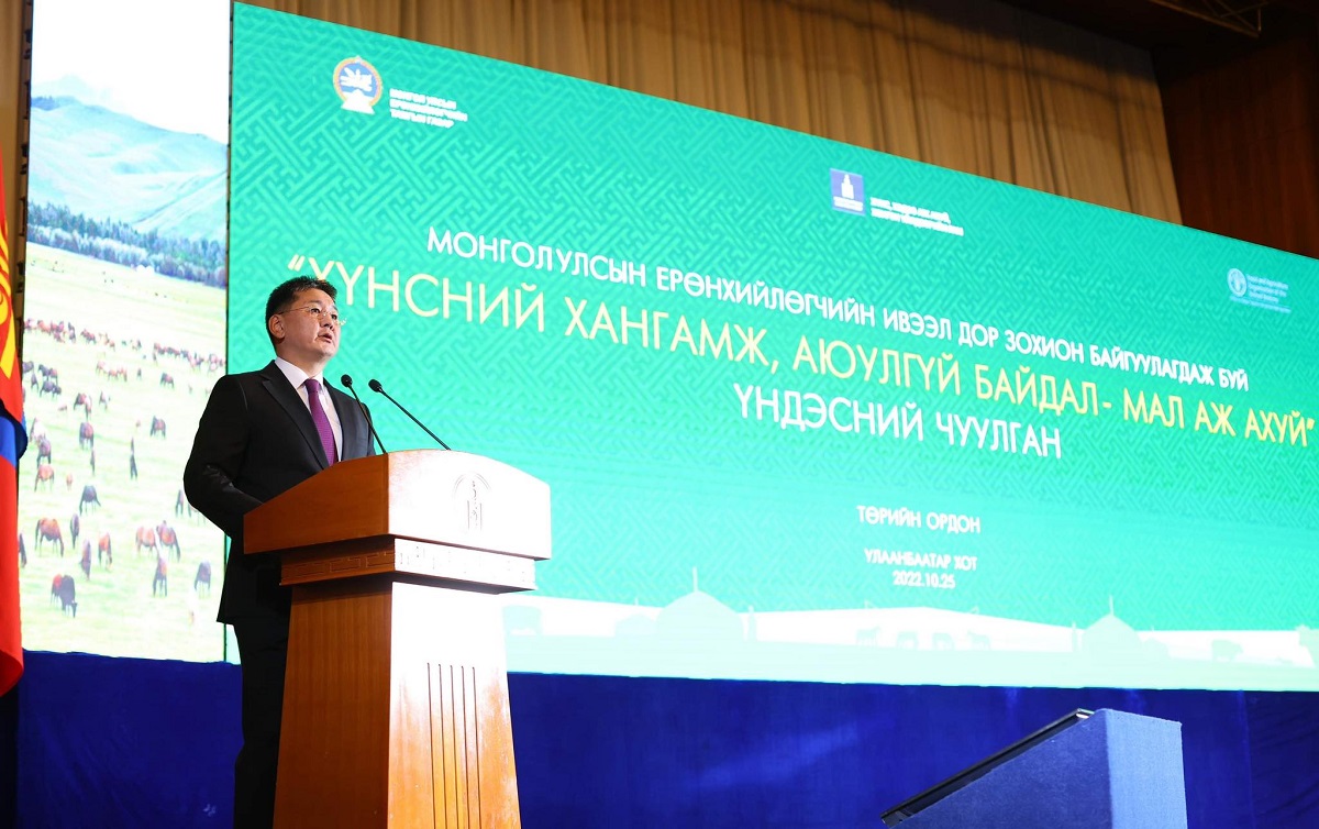 Тиймээс Монгол Улсын Ерөнхийлөгч ирэх таван жилийн хугацаанд мал сүргээ эрүүлжүүлж, малын ашиг шим, чанарт анхаарч, эрчимжсэн газар тариалан, мал аж ахуйг хослуулан хөгжүүлж, өргөн хэрэглээний 19 хүнсний нэр төрлийн бүтээгдэхүүнээр дотоодын хэрэгцээгээ бүрэн хангахын зэрэгцээ бүс нутагтаа органик хүнс экспортлогч орон болох зорилт дэвшүүлэн “Хүнсний хангамж, аюулгүй байдал” үндэсний хөдөлгөөнийг улс орон даяар өрнүүлж байгааг Та бүхэн мэдэж байгаа.