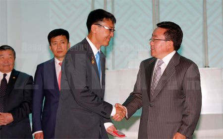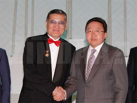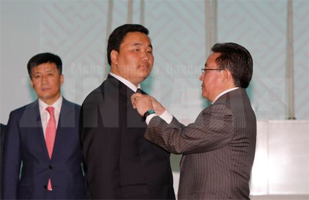Шагнал гардуулсны дараа Монгол Улсын Ерөнхийлөгч Цахиагийн Элбэгдорж баяр хүргэж үг хэлэхдээ, “Их түүхт ойнууд, энэ сайхан өнөтэй зун, Үндэснийхээ их баяр наадмын өмнө төр түмнээрээ гавъяа зүтгэлээ үнэлүүлж байгаа нийт хүмүүс, тэдгээрийн эрхэм төлөөлөл болсон Та бүхэнд чин сэтгэлийн талархал илэрхийлье.