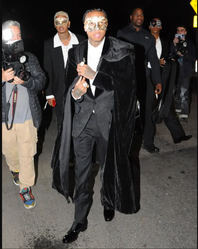 Төрсөн өдрийн эзэн Doja Cat Венецийн алтадмал маск бүхий толгойн гоёлтой иржээ. Харин эрэгтэй зочдын хувьд хар маск болон хослолоор гоёсон байх аж.