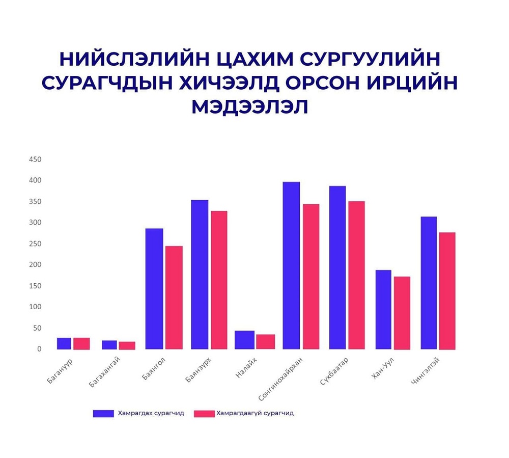 Цахим сургуулийн хичээл эхэлсэн дөрвөн 7 хоногт нийслэлийн сурагчдын хамрагдалт хангалтгүй байгааг Боловсролын ерөнхий газраас мэдээллээ.