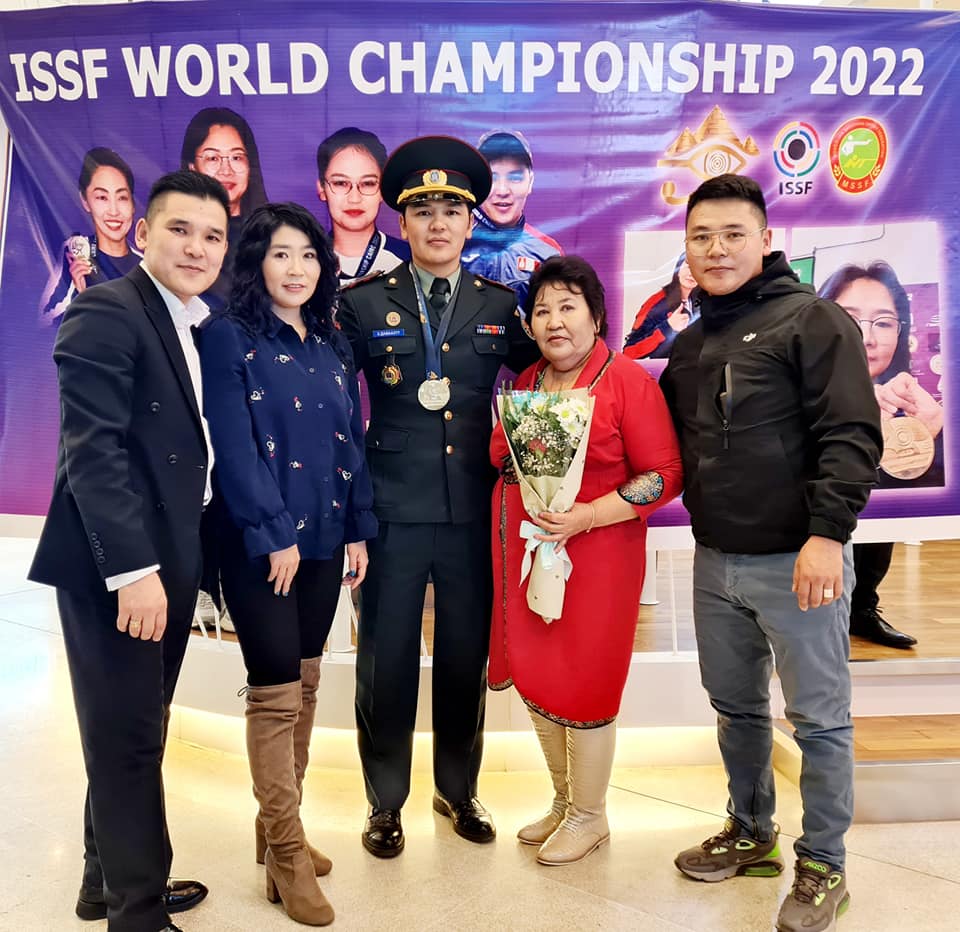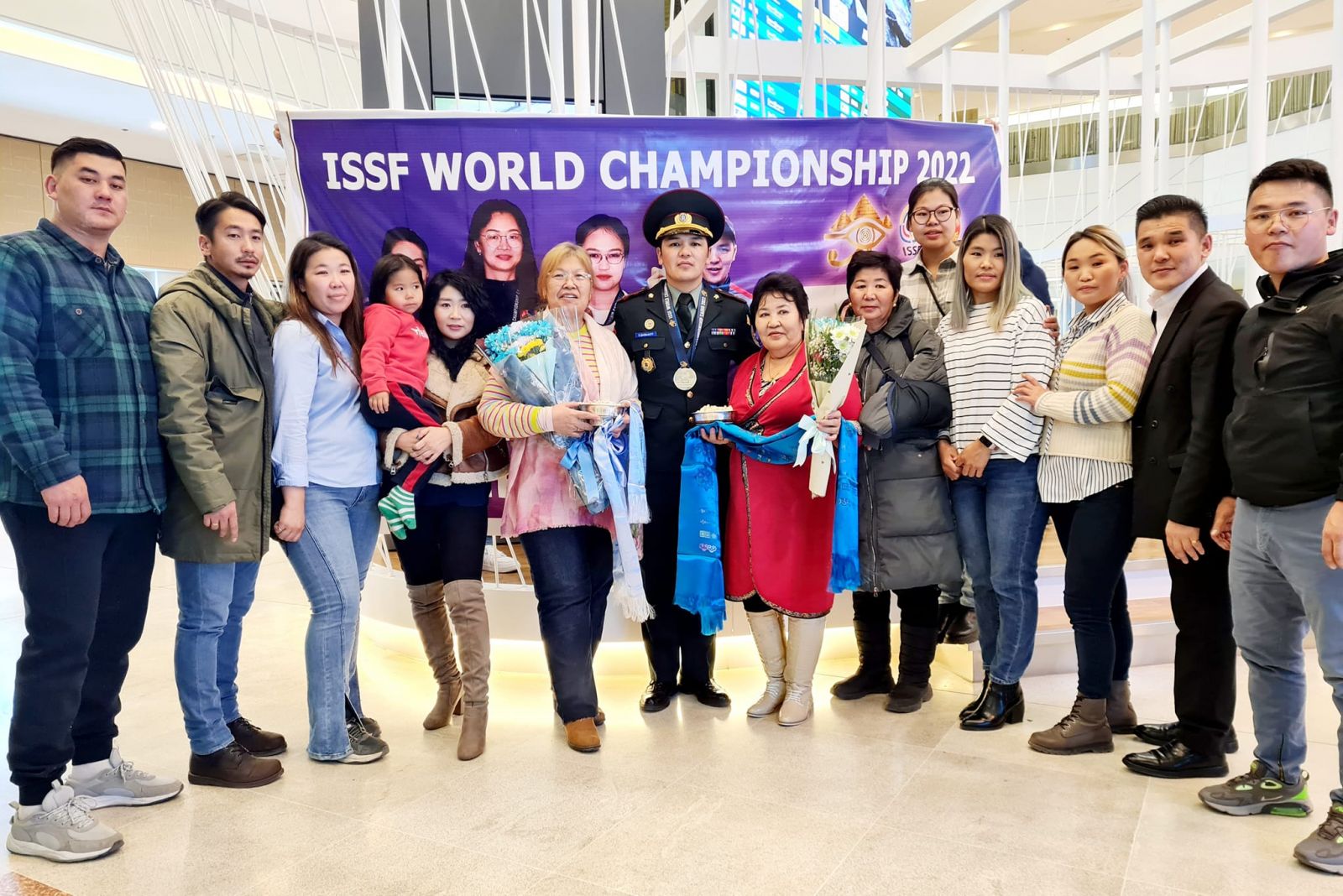 Түүнийг Монголын Буудлага спортын холбоо, "Алдар" спорт хороо, "АПУ" хувьцаат компанийн хамт олон угтан авлаа.
