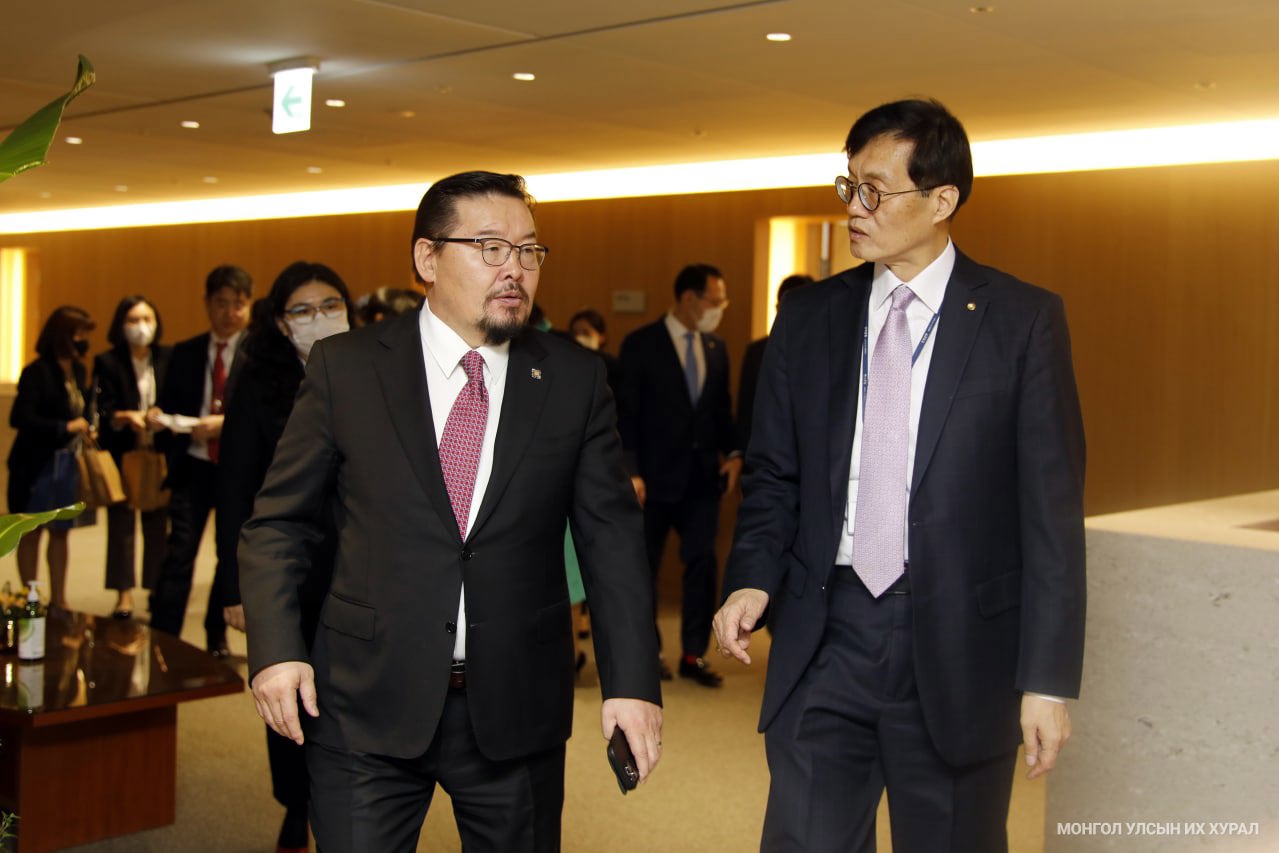 Монгол Улсын Их Хурлын дарга Г.Занданшатарын Бүгд Найрамдах Солонгос Улсад хийж буй ажлын айлчлал өнөөдөр /2022.10.28/ тус улсын Төв банкны ерөнхийлөгч И Чан Ён-той хийсэн уулзалтаар үргэлжиллээ.