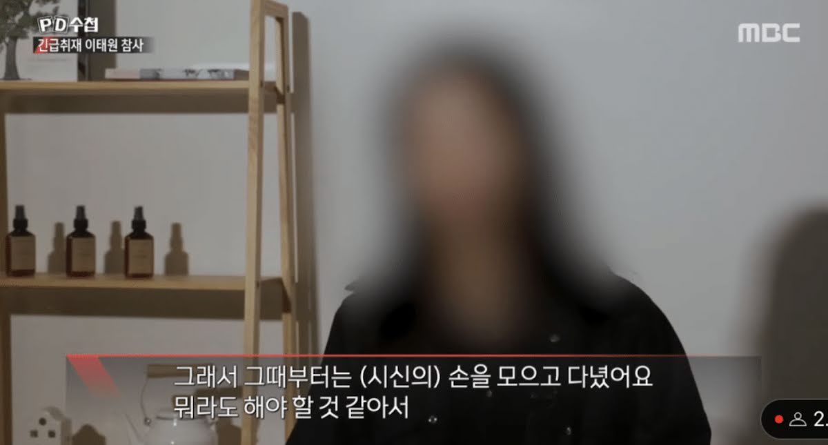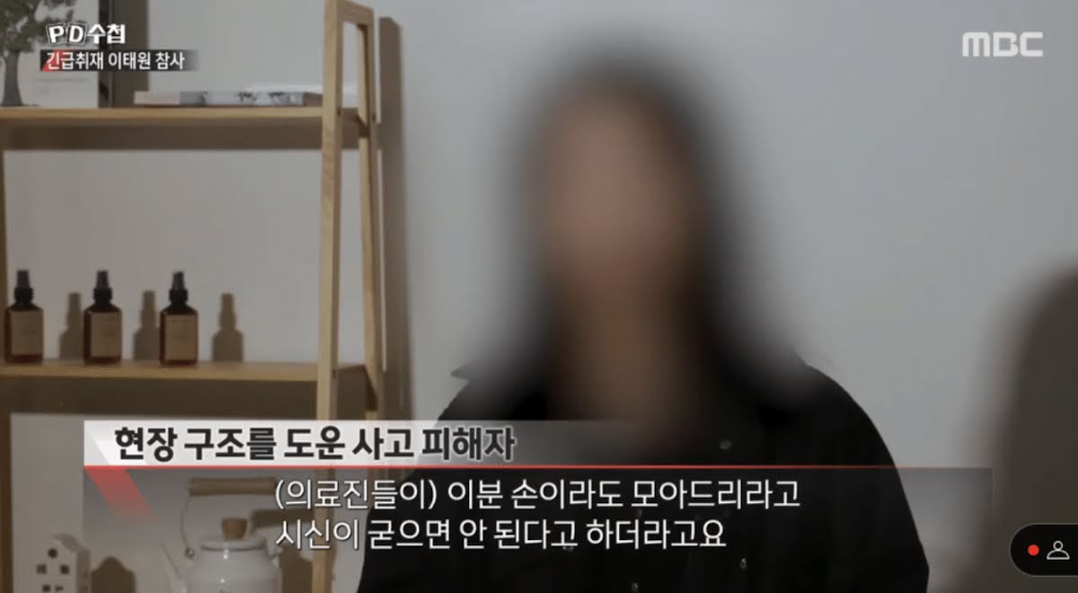 Өнгөрөгч аравдугаар сарын 29-ний өдөр БНСУ-ын Сөүл хотын Итэвон дүүрэгт 156 хүн нас барсан эмгэнэлт явдал болсон. Уг ослын үеэр хүмүүс дунд дарагдсан ч аврах ажилтнуудын тусламжтайгаар амьд үлдсэн бүсгүй PD Notes-т ярилцлага өгчээ.
