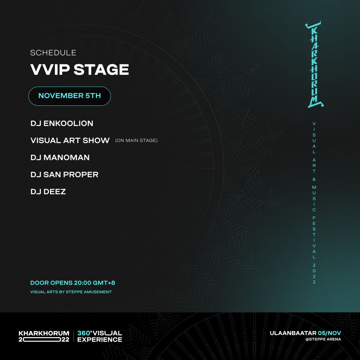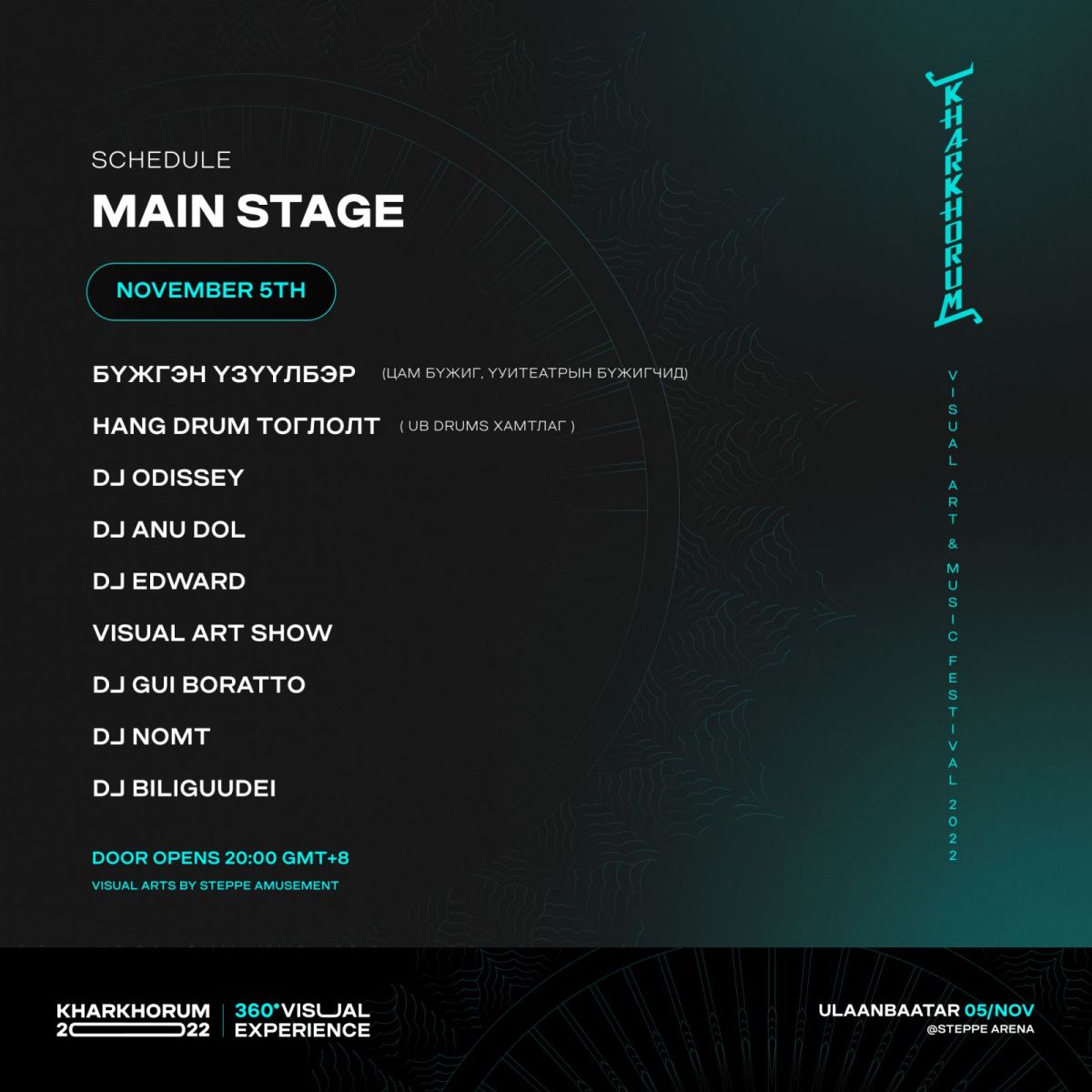 Visual Art-ыг 11 метр өндөр, 360° хэмжээс бүхий дэлгэцээр үзэнгээ шилдэг DJ нарын хөгжмийг сонсох боломжийг "KHARKHORUM Visual Art & Music Festival 2022" хөгжимд дурлагсдад олгох гэж байна.
