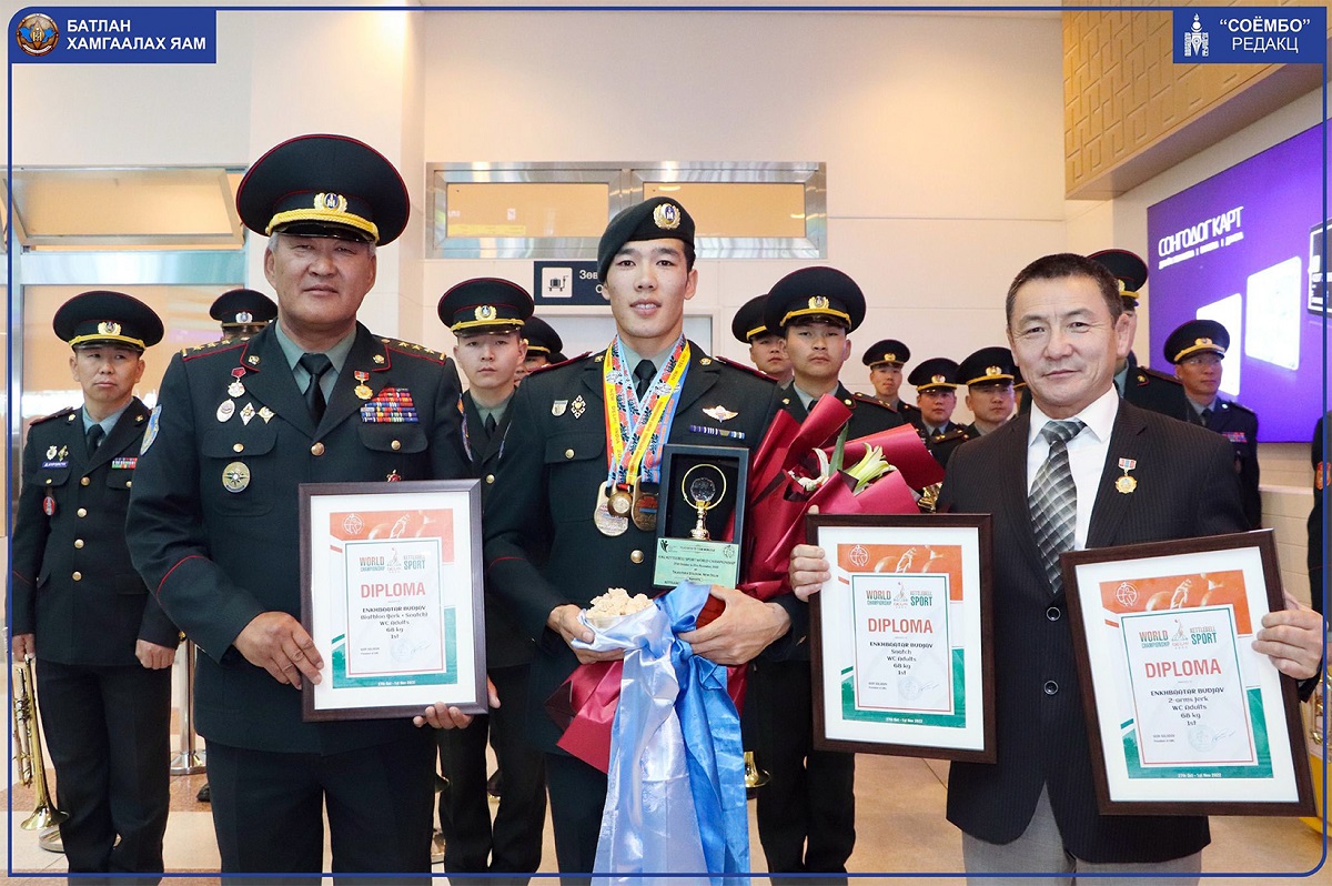 Түүнийг БХЯ, ҮБХИС, “Алдар” спорт хорооны төлөөлөл, ҮЖҮНХ-ийн бие бүрэлдэхүүн Хөшигтийн хөндийн нисэх онгоцны буудалд "Ялалт" маршийг эгшиглүүлэн хүндэтгэлтэйгээр угтан авлаа. Мөн түүний гэр бүл, анд нөхөд, нутгийн зөвлөлийн хамт олон баярт мөчийг нь хуваалцахаар хүрэлцэн очсон байв.
