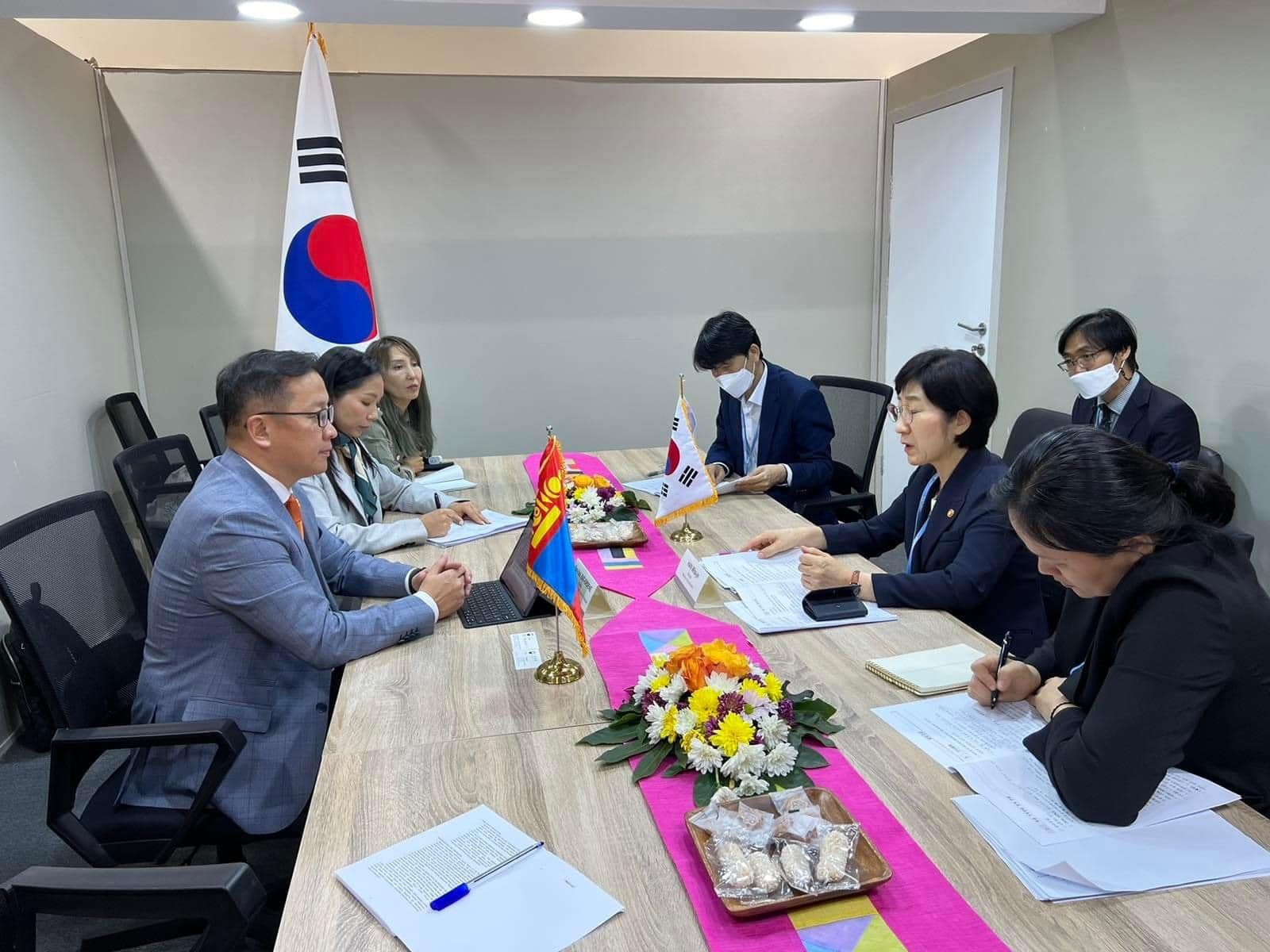 Байгаль орчны салбарын хамтын ажиллагааг улам өргөжүүлж, энэ оны тавдугаар сард БНСУ-д ажлын айлчлал хийх үеэр уур амьсгалын өөрчлөлтийн чиглэлээр хамтын ажиллагааг тэлж, Парисын хэлэлцээрийн 6 дугаар зүйлд заасан хамтарсан арга хэмжээг хэрэгжүүлэх яам хоорондын зохицуулалтыг манай хоёр яам байгуулсан. Энэ нь талуудын Парисын хэлэлцээрийн хүрээнд хүлээсэн үүрэг амлалтыг биелүүлэхэд чухал ач холбогдолтой гэж үзэж байна.