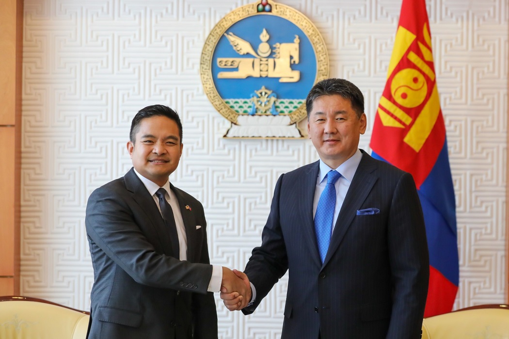 АНУ-аас Монгол Улсад суух Онц бөгөөд Бүрэн эрхт Элчин сайд Ричард Буанган Монгол Улсын Ерөнхийлөгч Ухнаагийн Хүрэлсүхэд Итгэмжлэх жуух бичгээ өргөн барилаа.