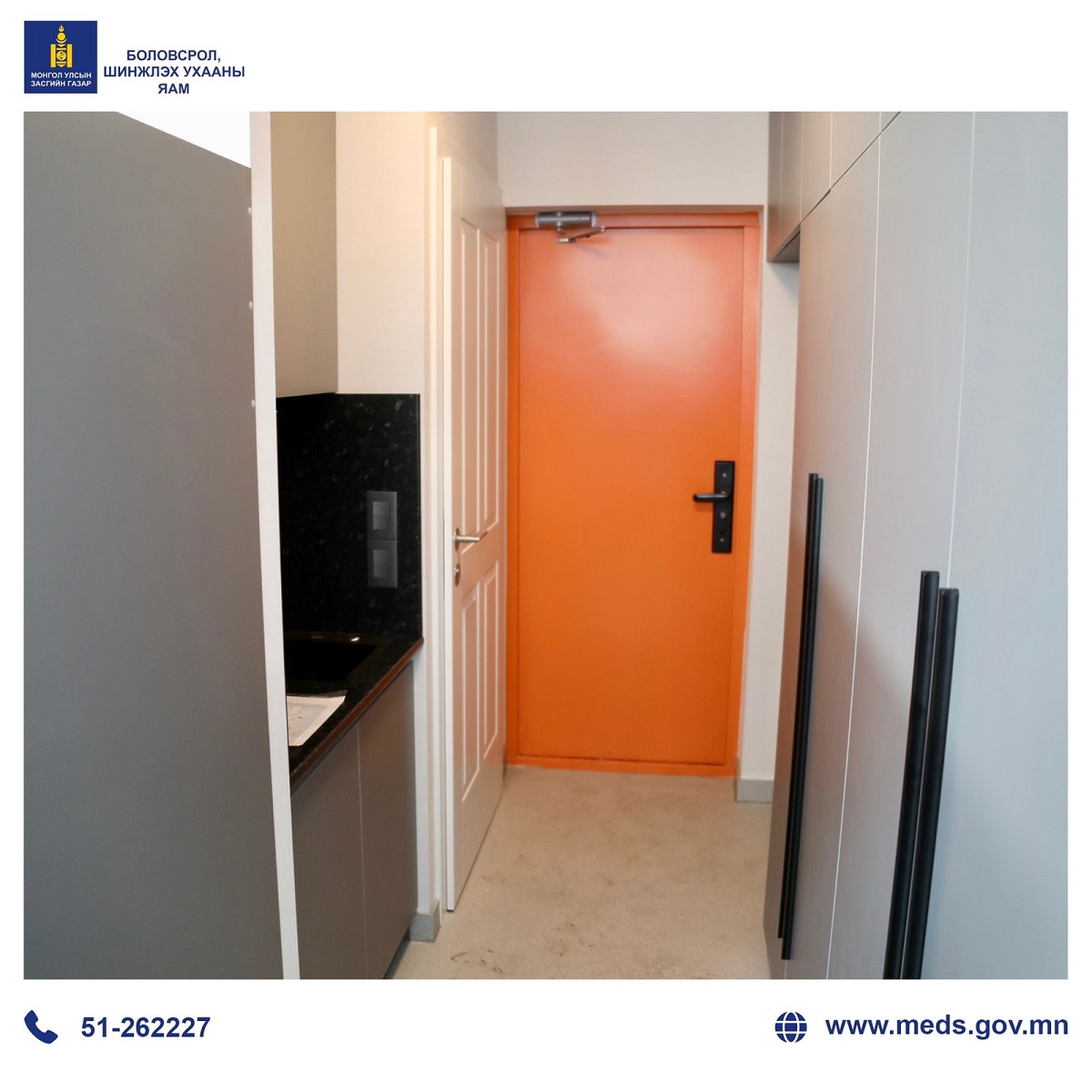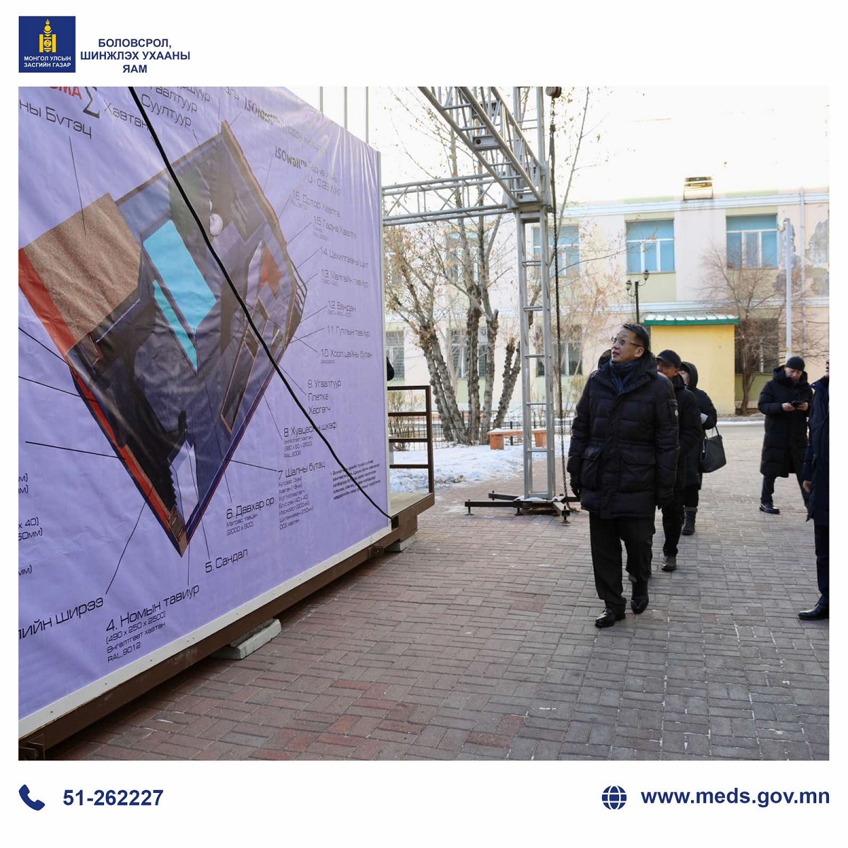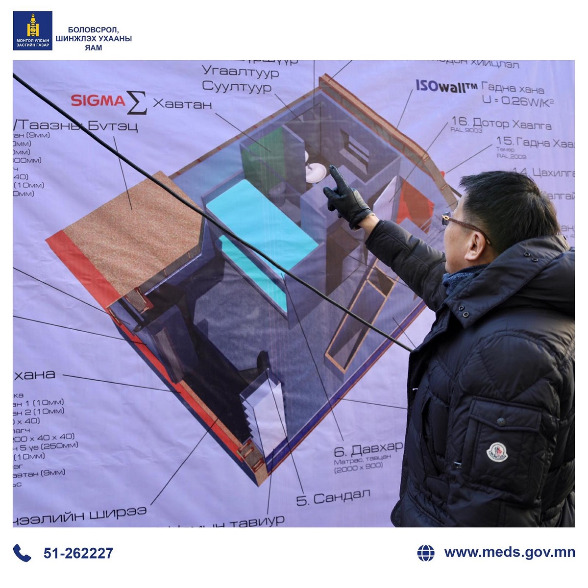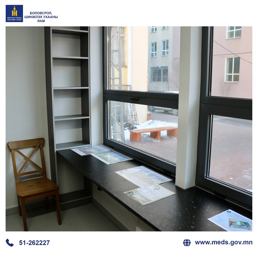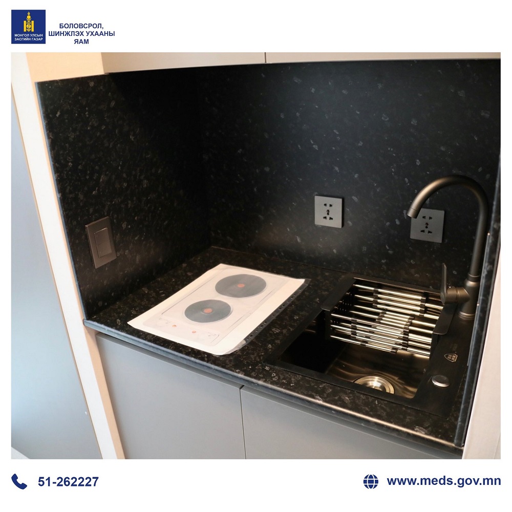 Боловсрол, шинжлэх ухааны сайд Л.Энх-Амгалан шинэ шийдэл бүхий оюутны дотуур байрын нэг өрөөний төлөвлөлт бүхий загвартай танилцаж, мэдээлэл сонслоо.