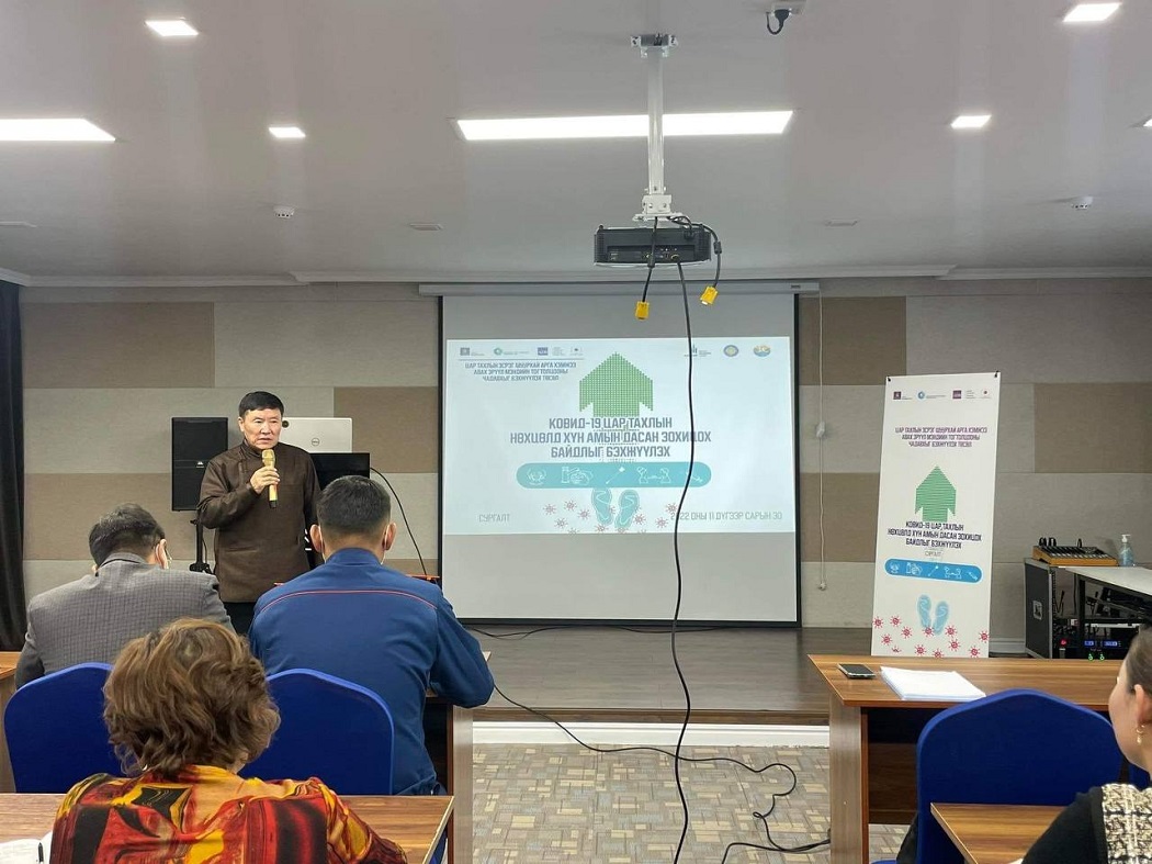 ЭМЯ, НЭМҮТ, АХБ хамтран Коронавируст халдвар (КОВИД-19)-т дасан зохицох, эрсдэлт зан үйлийг өөрчлөх, аливаа өвчнөөс урьдчилан сэргийлэхэд шаардлагатай нотолгоонд суурилсан мэдээлэл хүргэх, шинэ болон сэргэж буй халдварт өвчний үед бэлэн байдлыг хангах, мэдлэг, хандлагыг дээшлүүлэх зорилгоор 21 аймгийн эрүүл мэндийн салбарын бус мэргэжилтэн нарт зориулсан бүсчилсэн сургалтуудыг зохион байгуулж байна.