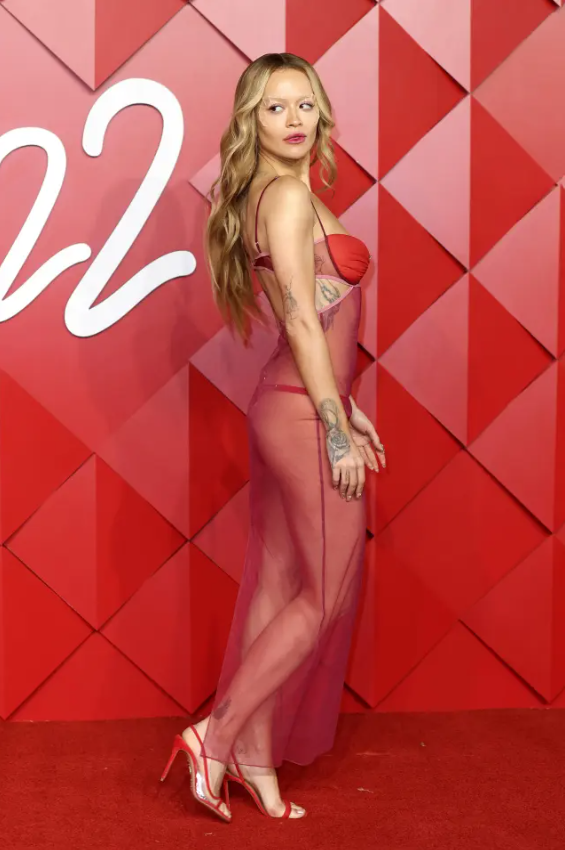Дуучин Рита Ора орон нутгийн цагаар даваа гарагт "2022 British Fashion Awards"-ын улаан хивсний ёслолд хүрэлцэн ирэхдээ нэвт гэрэлтдэг торон даашинзтай ирж багагүй шуугиан тарьжээ.
