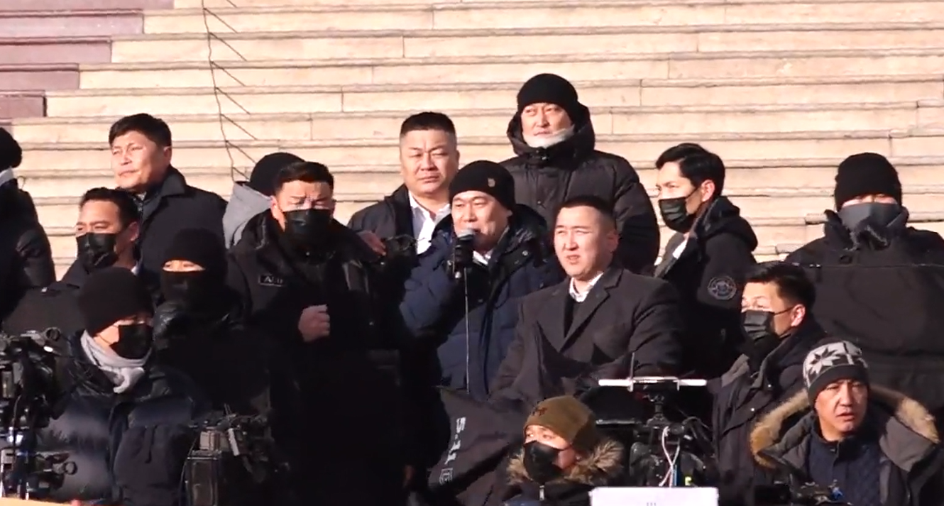 Монгол Улсын Ерөнхий сайд Л.Оюун-Эрдэнэ яг одоо /2022.12.07/ "Нүүрсний хулгай"-н гэх хэрэгт холбогдсон улстөрч, албан тушаалтнуудыг олон нийтэд ил болгохыг шаардсан жагсагчидтай уулзаж байна.