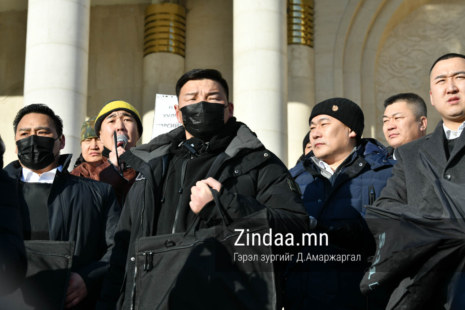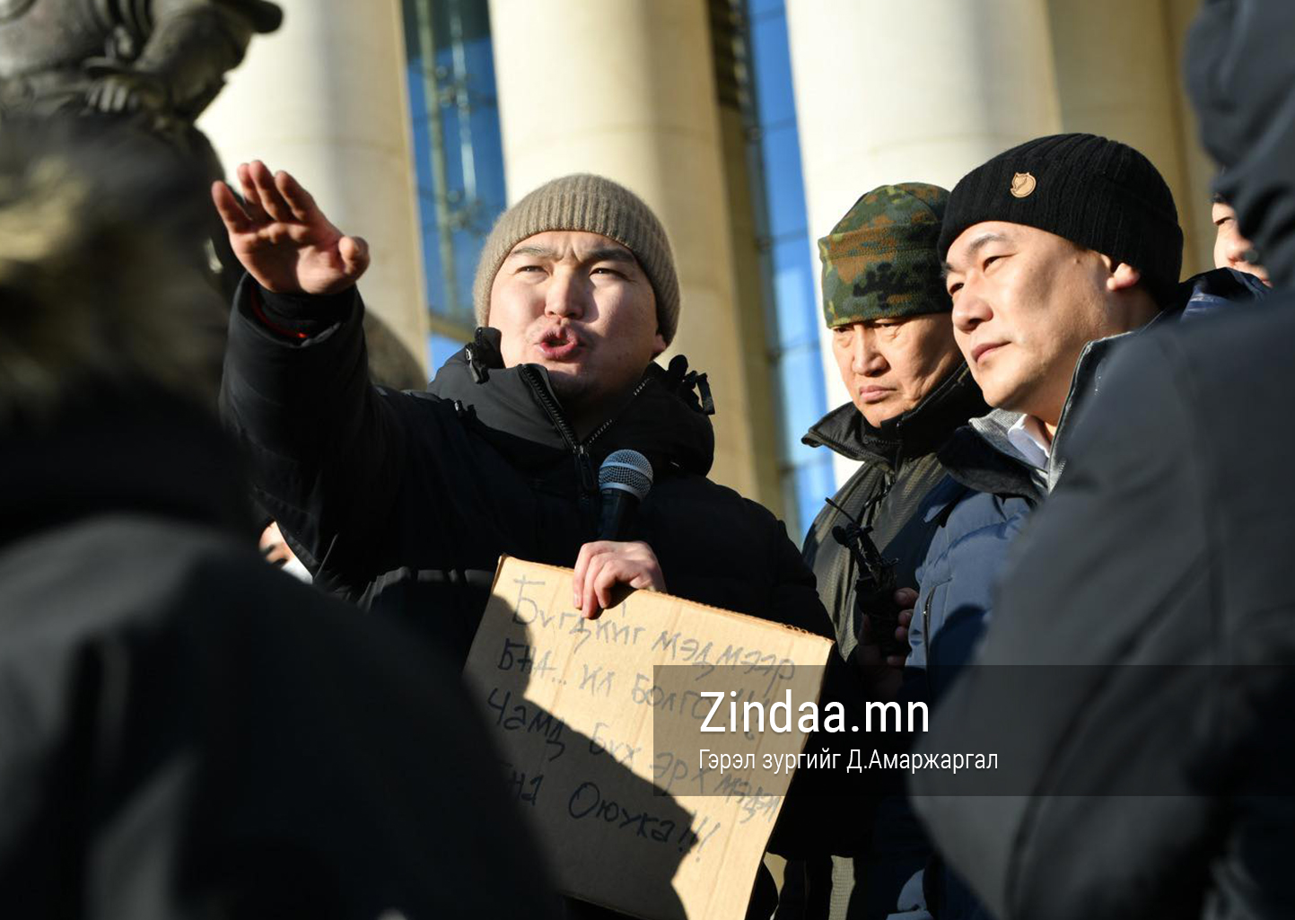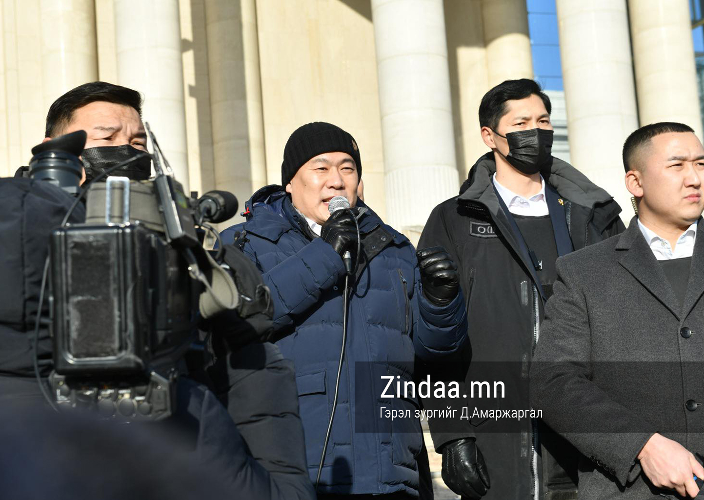 Шударга ёсны төлөө Засгийн газар та бүхэнтэйгээ хамтдаа байх болно. Шүүх, цагдааг шахаж ажиллах болно. Өнөөдрийг хүртэл шүүх дээр гацаж байгаа хэргүүдээ шийд гэдгийг шүүх байгууллагад хандаж хэлэхийг хүсэж байна. Та бүхэнтэйгээ шударга ёсны төлөө эхлүүлсэн ажлаа дуусгах болно. Бид Ерөнхийлөгч, Ерөнхий сайд, УИХ-тайгаа ард нь гарах ёстой. Бууж өгөхгүйгээр өрөвдөхгүйгээр тогтолцоогоо шийдэх ёстой.