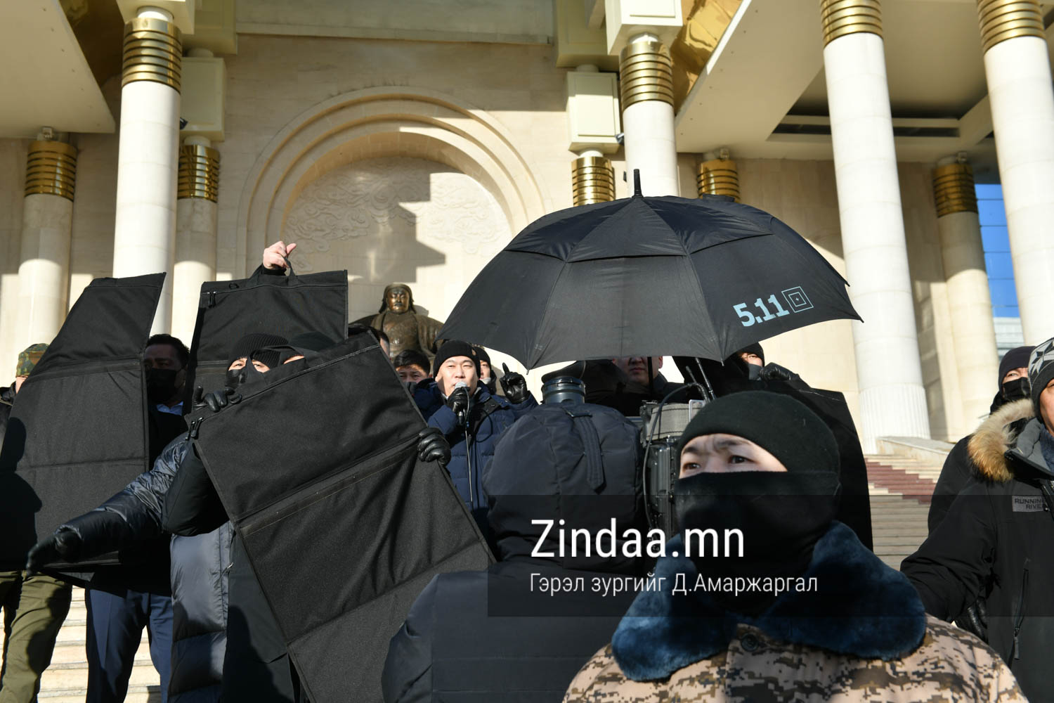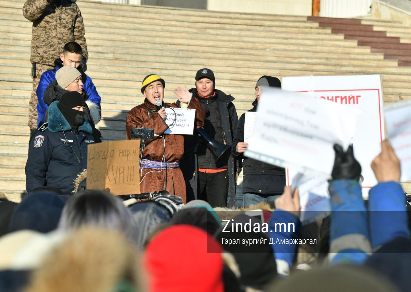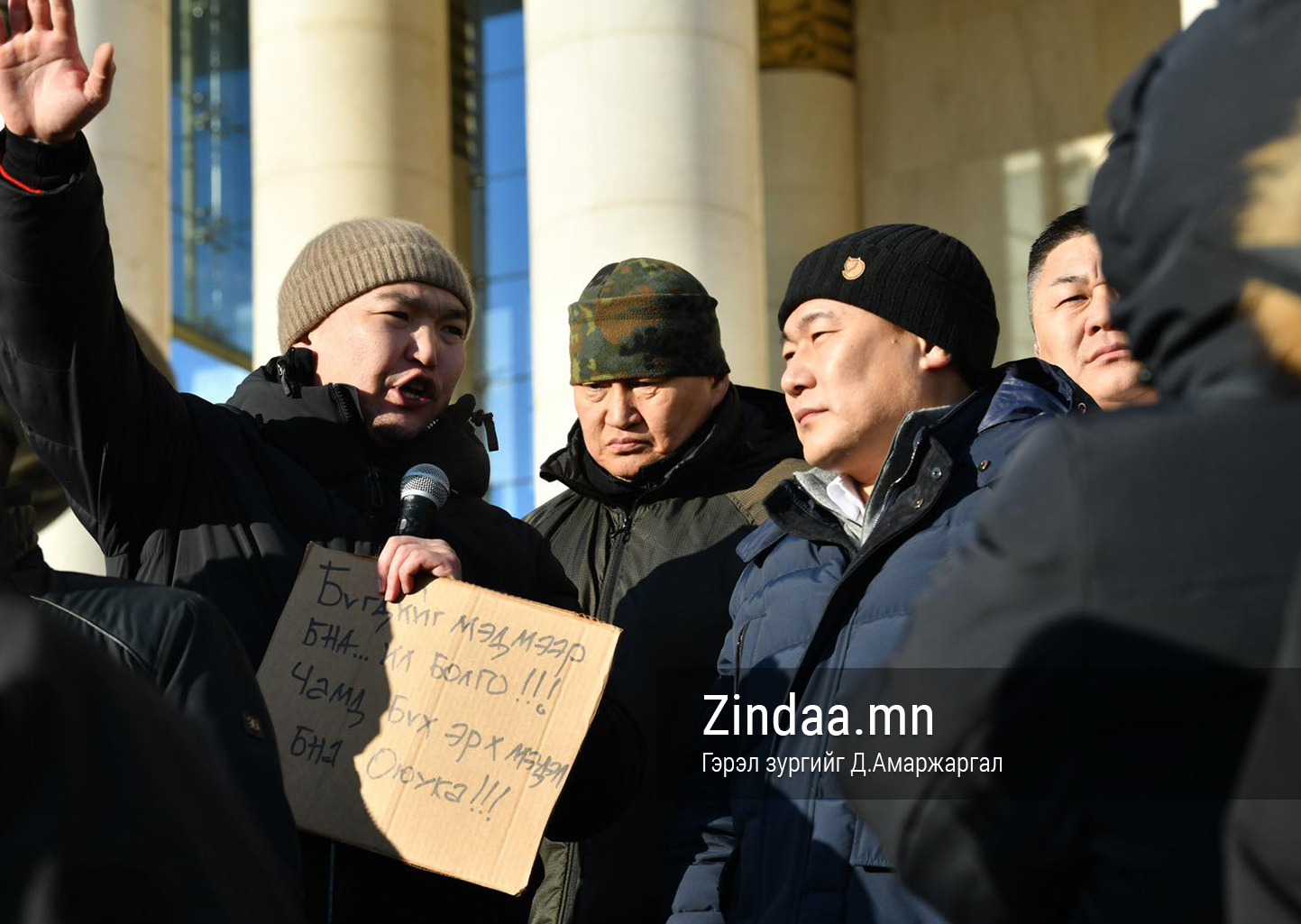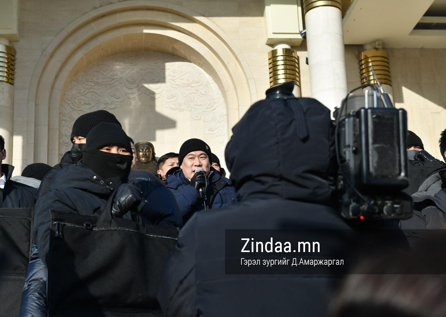 Шударга ёсны төлөө Засгийн газар та бүхэнтэйгээ хамтдаа байх болно. Шүүх, цагдааг шахаж ажиллах болно. Өнөөдрийг хүртэл шүүх дээр гацаж байгаа хэргүүдээ шийд гэдгийг шүүх байгууллагад хандаж хэлэхийг хүсэж байна. Та бүхэнтэйгээ шударга ёсны төлөө эхлүүлсэн ажлаа дуусгах болно. Бид Ерөнхийлөгч, Ерөнхий сайд, УИХ-тайгаа ард нь гарах ёстой. Бууж өгөхгүйгээр өрөвдөхгүйгээр тогтолцоогоо шийдэх ёстой.