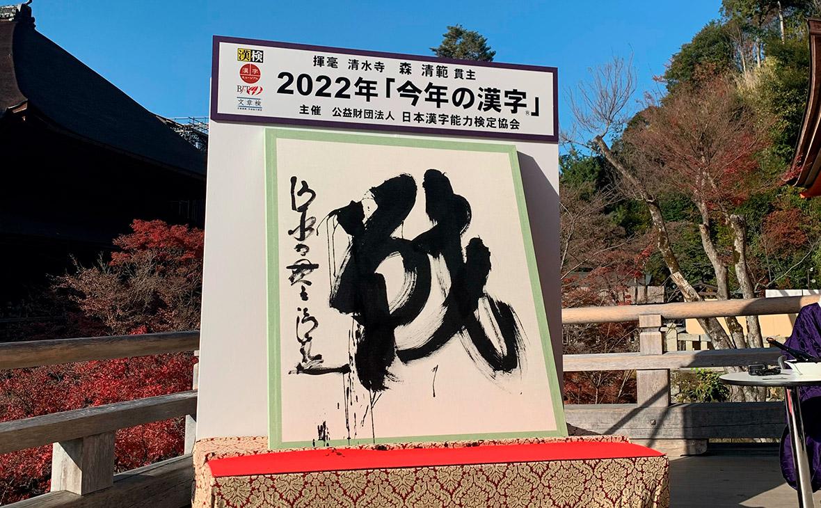 Уралдааны дүнг зарлах ёслол Киёмизү сүмд болсон байна. Даваа гарагт /2022.12.12/ Японы хамгийн нэр хүндтэй сүмүүдийн нэг Киотогийн Киёмизү сүмийн лам “тулаан” гэсэн утга бүхий ханзыг 1.5х1.3 метр хэмжээтэй “васи” цаасан дээр бичжээ. Оны бэлэг тэмдэг болсон ханзыг бичихдээ Хирошима мужид зөвхөн цагаан адууны сүүлээр хийсэн 4.5 см голчтой бийр, Нара мужийн тусгай бэхийг ашигладаг байна.