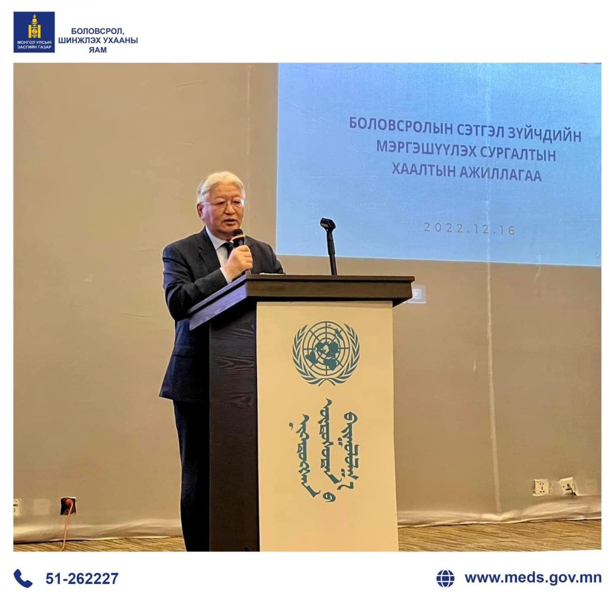 НҮБ-ын Хүүхдийн сангаас боловсролын салбарт сэтгэл зүйчийн дэд тогтолцоог бэхжүүлэх, боловсролын сэтгэл зүйчдийг бэлтгэх асуудлыг дэмжин хүсэлт гаргасан ерөнхий боловсролын сургуулиудын сэтгэл зүйчдийг мэргэшүүлэх 3, 4 дүгээр ээлжийн сургалтыг хамтран зохион байгууллаа.