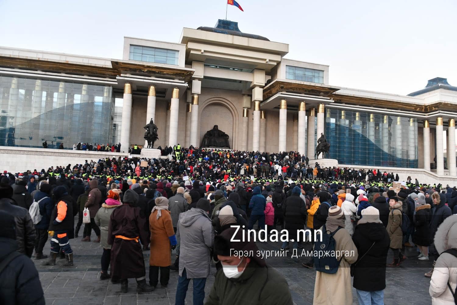 Иргэдийн жагсаал арванхоёрдугаар сарын 4-нд эхэлсэн. Өнгөрсөн хугацаанд Соёлын төв өргөөнд зураачдын үзэсгэлэн дэлгэсэн байсан учир нээх боломжгүй өдийг хүрсэн талаар Хууль зүй, дотоод хэргийн сайд Х.Нямбаатар хэлж байсан билээ.