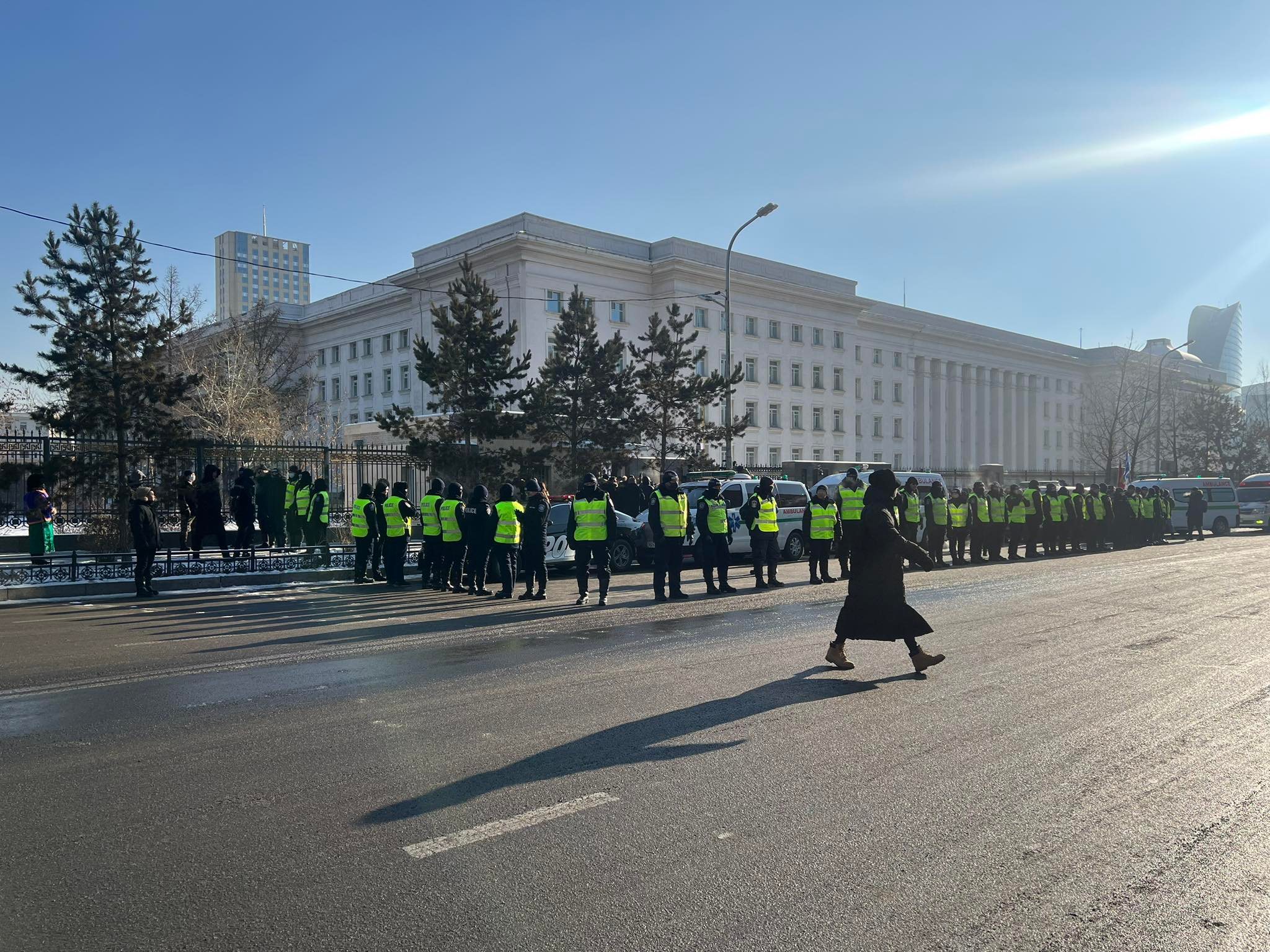 Нийслэлийн Сүхбаатар дүүргийн зургаадугаар хороо, Д.Сүхбаатарын талбайд энэ оны арванхоёрдугаар сарын 4-ний өдрөөс эхлэн зохион байгуулагдаж буй жагсаал, цуглаан өчигдөр (2022.12.21) 17 дахь өдрөө үргэлж байгаа бөгөөд Цагдаагийн байгууллагаас хуулиар хүлээсэн чиг үүргийнхээ хүрээнд нийтийн хэв журам хамгаалах, олон нийтийн аюулгүй байдлыг хангах зорилгоор үг хэлэх, үзэл бодлоо илэрхийлж буй иргэнийнхээ аливаа гэмт халдлагаас хамгаалах, хэв журам сахиулан нээлттэй, хүндэтгэлтэй хандан ажиллаж байна.