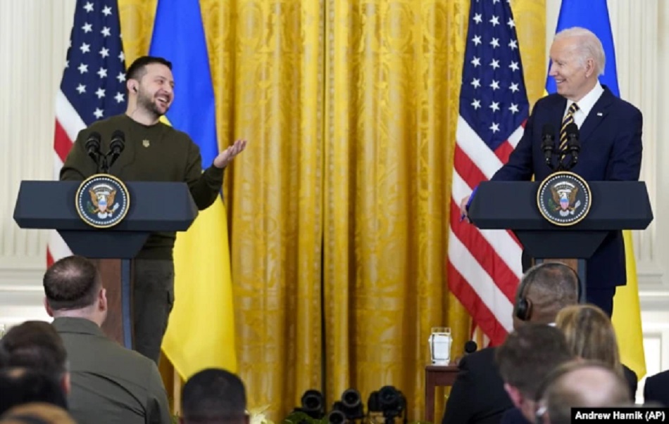 Зеленский арванхоёрдугаар сарын 21-ний лхагва гарагт АНУ-д хүрэлцэн очсон. Вашингтонд Украины удирдагч АНУ-ын Ерөнхийлөгч Жо Байдентай хэлэлцээ хийсэн бөгөөд хоёр удирдагч хэлэлцээ хийснийхээ дараа Цагаан ордонд хамтарсан хэвлэлийн бага хурал хийсэн юм. Энэ уулзалтын үеэр АНУ-ын Ерөнхийлөгч Жо Байден Путин өвлийг зэвсэг болгон ашиглахаар зэхэж байгаа гээд америкчууд Европын холбоотнуудын хамтаар Украиныг дэмжсээр байна хэмээжээ. АНУ болон холбоотнууд хүмүүнлэгийн, цэргийн гээд шаардлагатай бүхий л тусламжийг Украинд үзүүлэхийн тулд бүхий л хүчин чармайлтаа дайчилна гэж Байден мэдэгдсэн байна. ОХУ хоёрдугаар сарын 24-ний өдөр Украин руу халдаж, өнөөгийн дайныг дэгдээснээс хойш 301 өдөр хэдийнэ өнгөрөөд байна. Талууд дайн эхэлсэн дөрөв дэх өдөр буюу хоёрдугаар сарын 28-ны өдөр хэлэлцээрийн анхны шатыг эхлүүлж, хамгийн сүүлд гуравдугаар сард Туркэд хэлэлцсэн ч үр дүнд хүрээгүй, өдийг хүртэл дайтсаар байгаа юм.