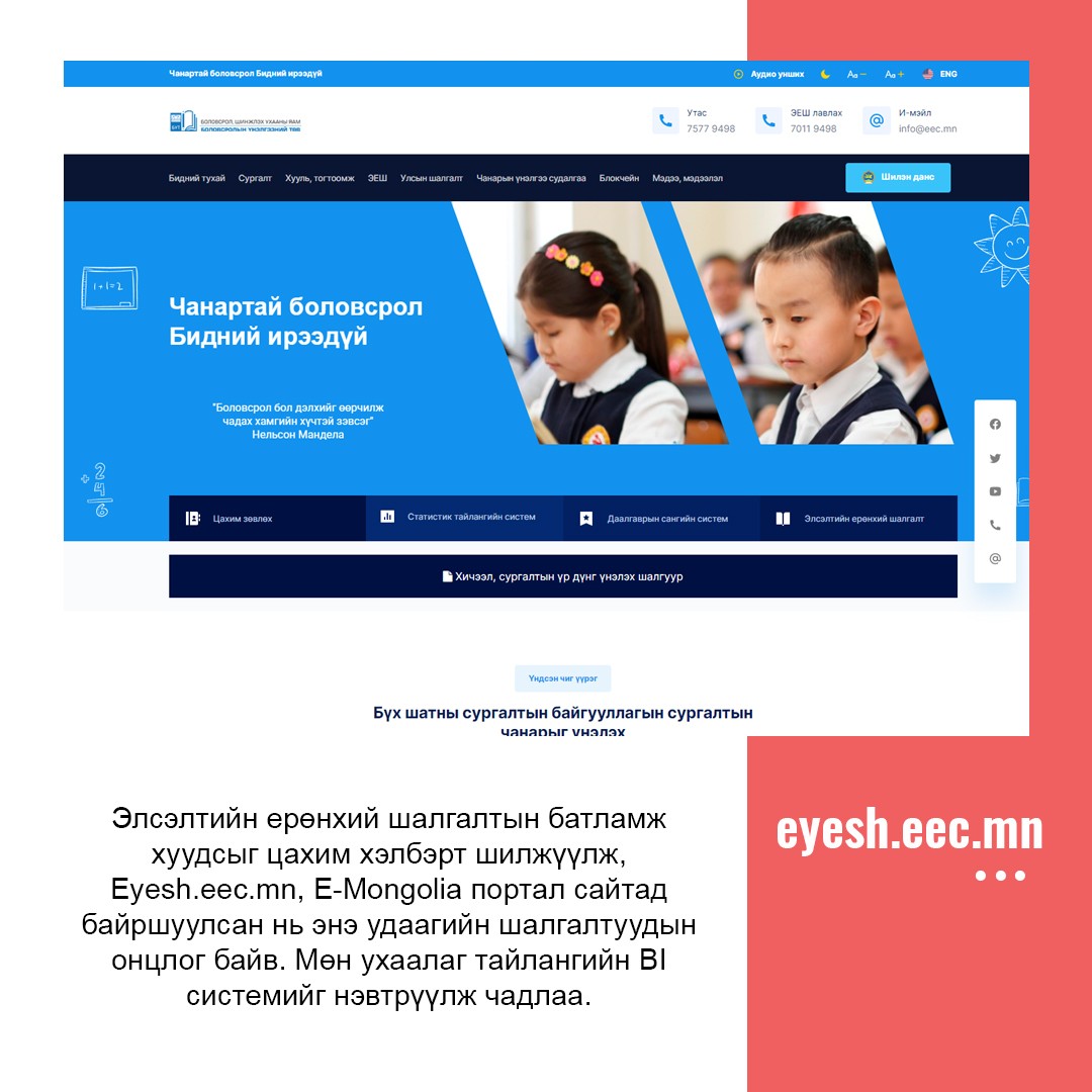 ЭЕШ-ыг жилд хоёр удаа зохион байгуулснаар шалгуулагчид дүн оноогоо ахиулах, өмнө нь хамрагдаж чадаагүй сурагчдад боломж олгох юм. Элсэлтийн ерөнхий шалгалтын батламж хуудсыг цахим хэлбэрт шилжүүлж, Eyesh.eec.mn, E-Mongolia портал сайтад байршуулсан нь энэ удаагийн шалгалтуудын онцлог байв.