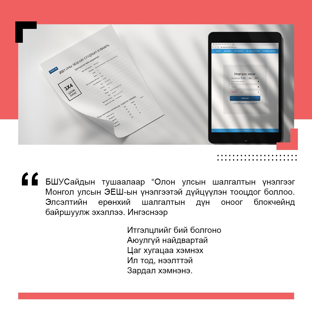 БШУСайдын тушаалаар “Олон улсын шалгалтын үнэлгээг Монгол улсын Элсэлтийн ерөнхий шалгалтын үнэлгээтэй дүйцүүлдэг боллоо.
