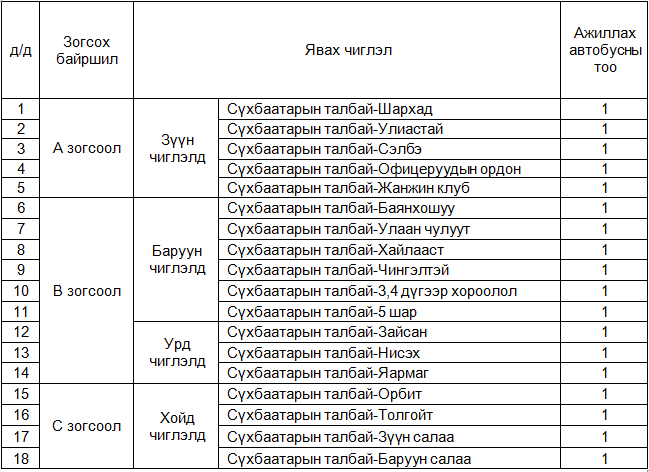 Улаанбаатарын “Мөнгөн үдэш” баярын хөтөлбөрийн дараа нийтийн тээврийн 18 чиглэлд 18 автобус Сүхбаатарын талбайн баруун, зүүн, урд зүгт байрлах зогсоолоос иргэдэд үнэ төлбөргүй үйлчлэх юм.
