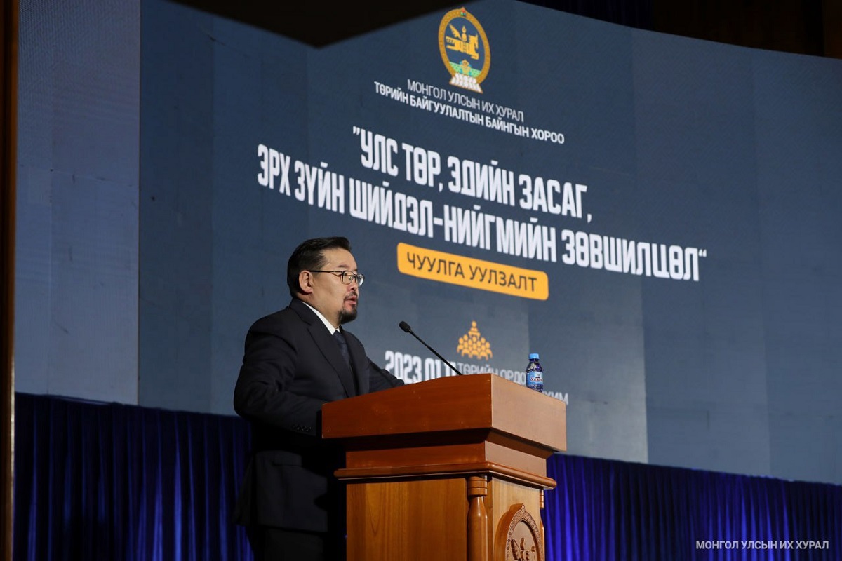 Чуулга уулзалтыг нээж, Улсын Их Хурлын дарга Г.Занданшатар үг хэлэв.