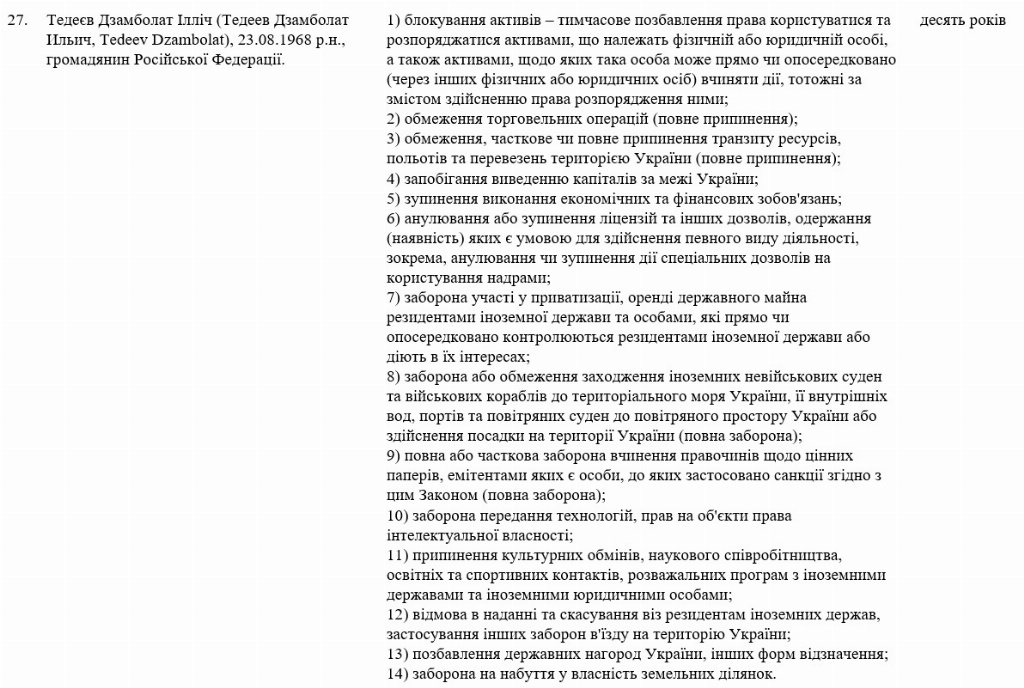 Тэдний эсрэг хориг 10 жил үйлчлэх бөгөөд энэ хугацаанд Украинд очих, харилцаа холбоо тогтоох, хөрөнгө эзэмших эрхийг нь хассан ажээ.