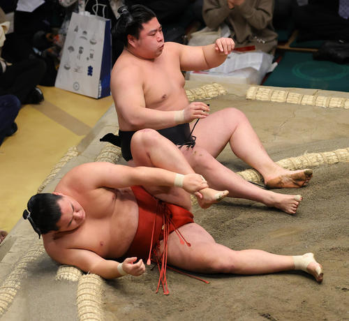 Өнөөдөр түүнтэй барилдах ёстой байсан Кирибаяма даваа авч байна.
