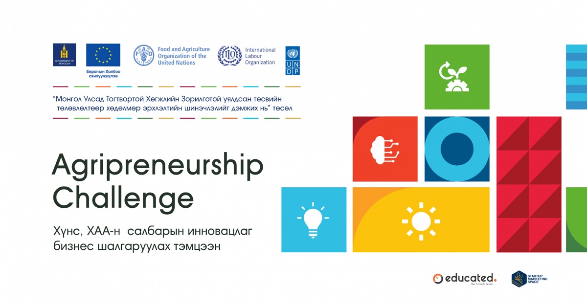 Хүнс, хөдөө аж ахуйн салбарын шинэлэг бизнесүүдийг шалгаруулах “Agripreneurship Challenge”  тэмцээн зарлагдлаа. Энэ тэмцээнийг Европын Холбооны санхүүжилтээр НҮБ-ын Хүнс, хөдөө аж ахуйн байгууллагаас хэрэгжүүлж буй “Монгол Улсад Тогтвортой Хөгжлийн Зорилготой уялдсан төсвийн төлөвлөлтөөр хөдөлмөр эрхлэлтийн шинэчлэлийг дэмжих нь” төслөөс зохион байгуулж буй юм.