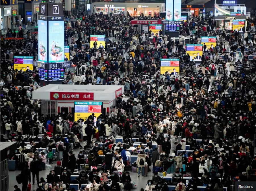 Зарим шинжээч эдийн засгийн сэргэлт удаашралтай байна гэж үзэж байгаа бол Хятадын Ерөнхий сайдын орлогч Лю Хэ мягмар гарагт Швейцарьт болсон Дэлхийн эдийн засгийн форумын үеэр Хятад улс тахлын улмаас гурван жил тусгаарлагдсаны дараа дэлхийд нээлттэй болсон гэж мэдэгдэв. Үндэсний цагаачлалын албаны ажилтнууд нэгдүгээр сарын 8-нд хилээ нээснээс хойш өдөрт дунджаар хагас сая хүн дотооддоо шилжин суурьшсан талаар мэдээлжээ. Бямба гарагт албан ёсоор амралт эхэлмэгц энэ тоо өдөрт 600 мянга болсон байна.